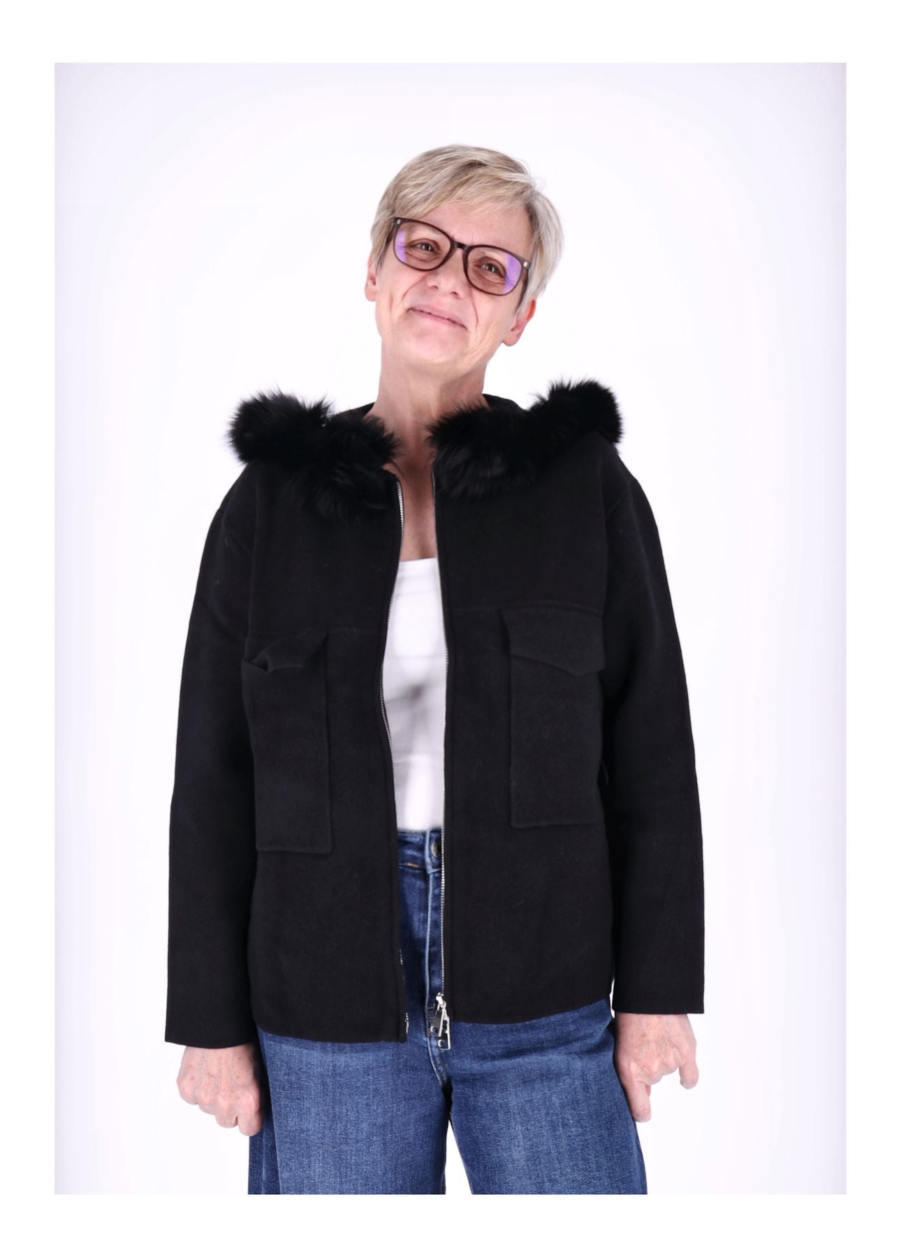 Das Highlight ist die Kapuze mit flauschigem Fellrand, die nicht nur stylisch aussieht, sondern dich auch angenehm warm hält. Vorn findest du zwei Taschen mit Schutzklappe, die praktisch und dekorativ zugleich sind. Dank durchgehendem Reißverschluss kannst du die Jacke offen oder geschlossen tragen – ganz nach deinem Style.