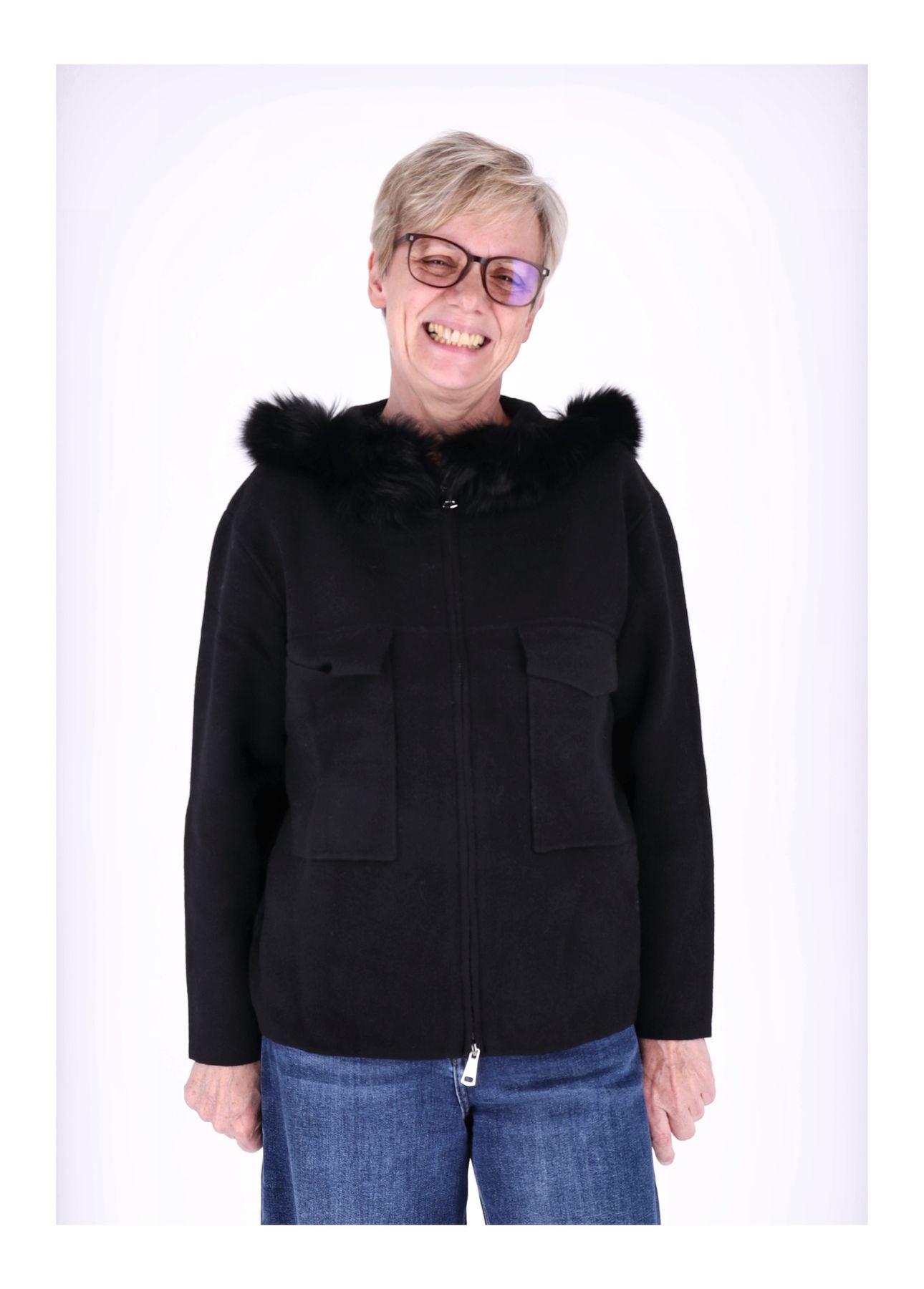 Strickjacke Damen Kapuze Fell