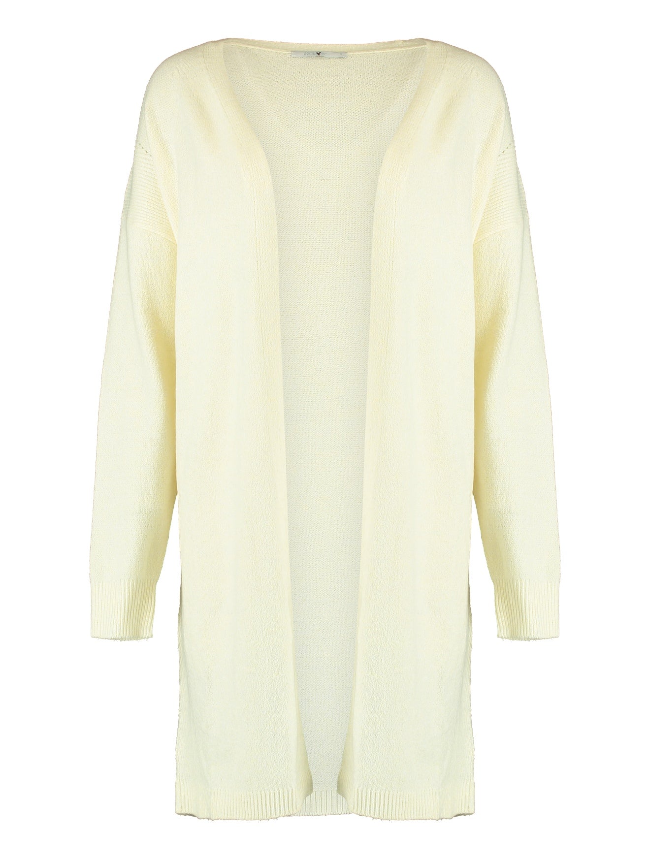 Strickjacke mittlere Länge in weicher Qualität, wird offen und ohne Verschluss getragen.