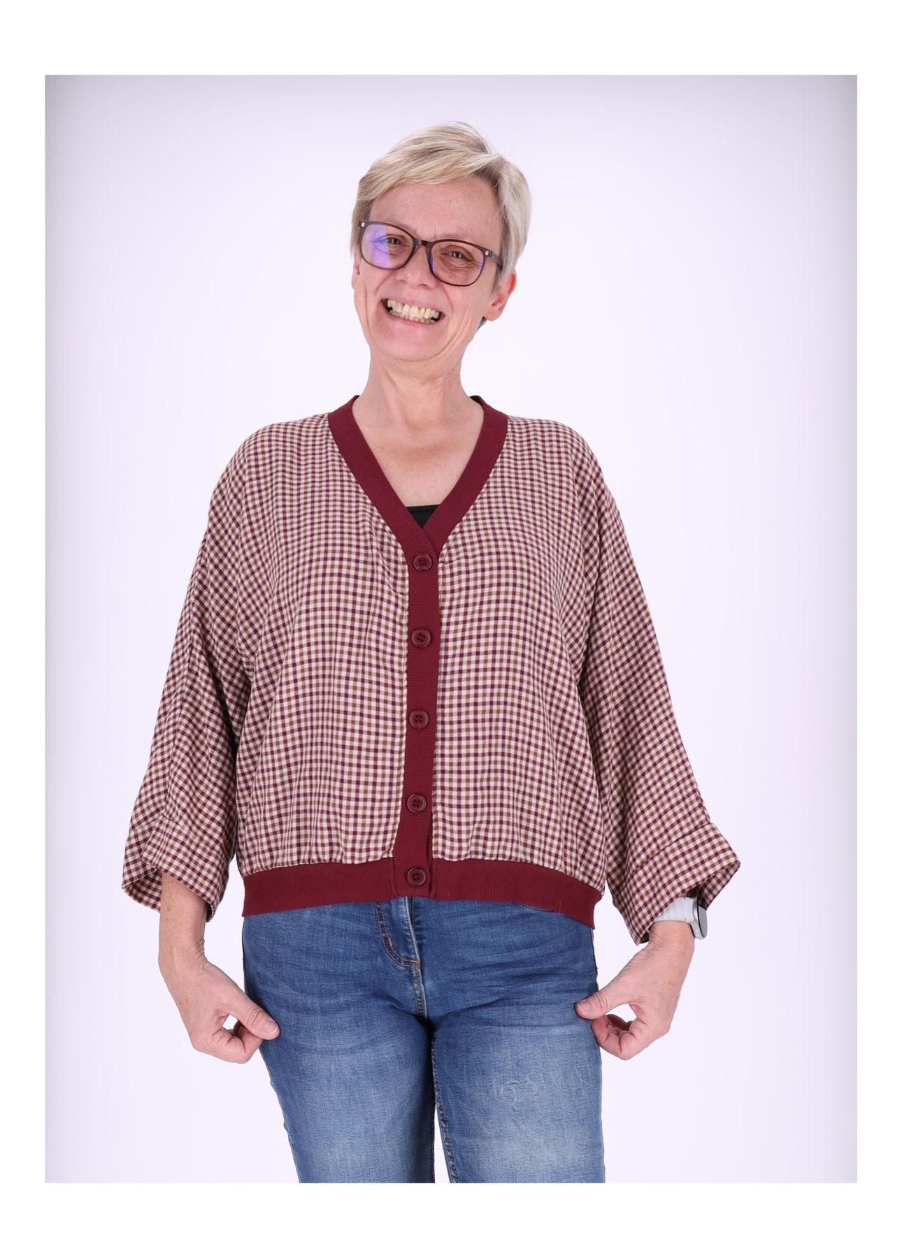 Damen Blousonjacke Karo – Onesize (passt ca. Größe M–L) – Dein stylischer Allrounder für jede Saison!