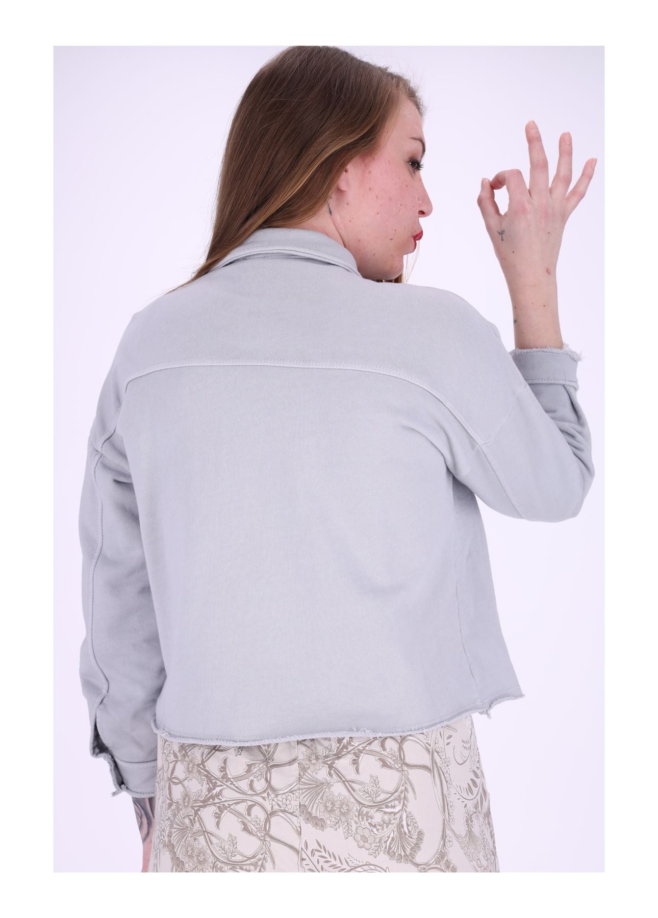 Verkürzte Damen-Sweatjacke mit offenen Nähten und Hemdkragen – Lässig, Modern, Vielseitig