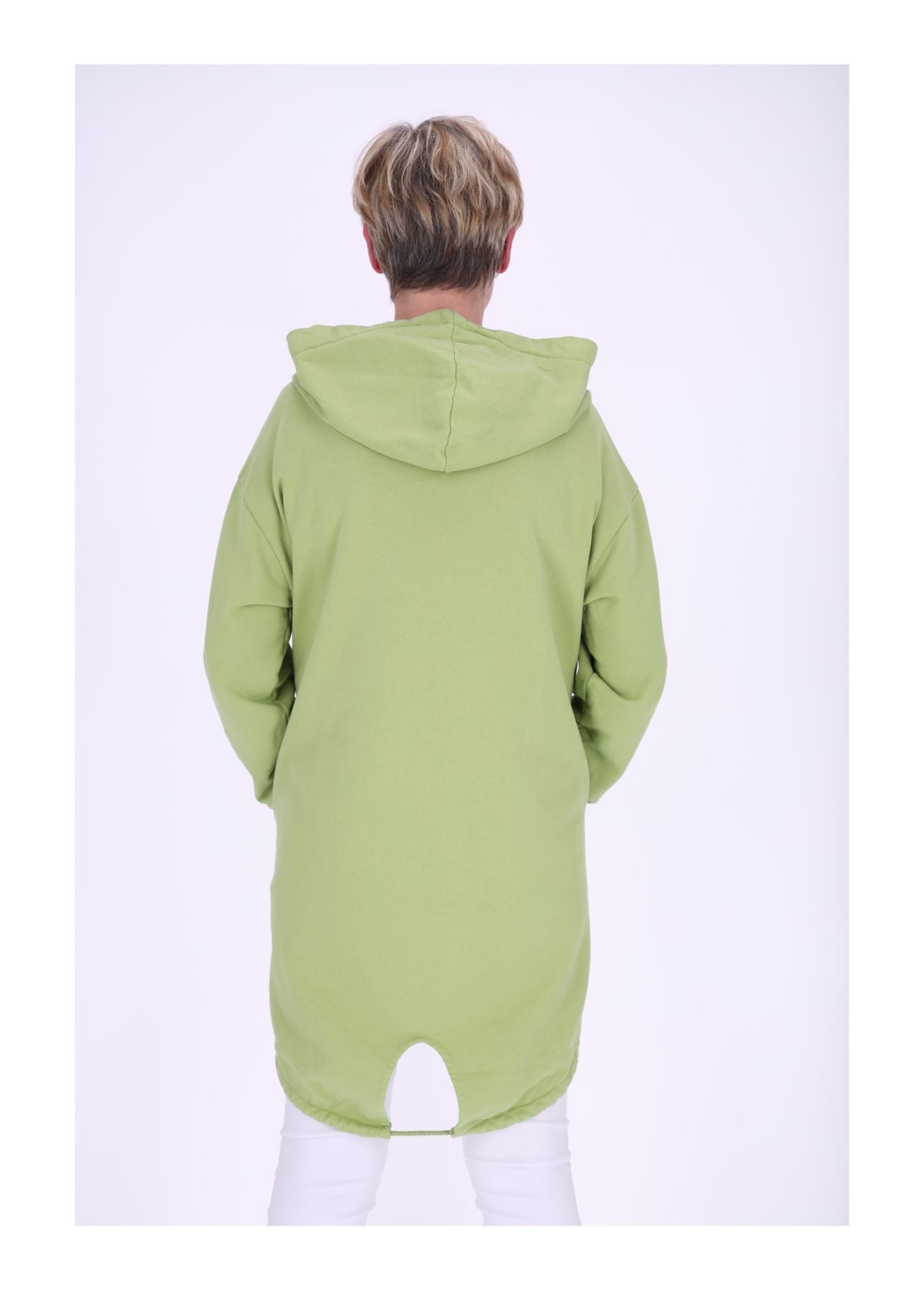 Diese lange Damen Sweatjacke mit Kapuze ist der perfekte Mix aus Komfort und modernem Design. Der asymmetrische Schnitt – vorne kürzer, hinten länger – sorgt für eine trendige Optik, während der verstellbare Bund mit Kordelzug eine individuelle Passform ermöglicht. Dank des praktischen Reißverschlusses lässt sich die Jacke einfach an- und ausziehen. Die Seitentaschen bieten Platz für kleine Essentials oder warme Hände an kühleren Tagen.