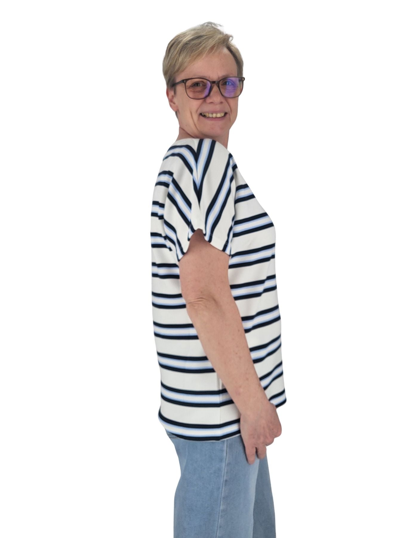 T-Shirt Damen mit angeschnittenem Arm & Streifen