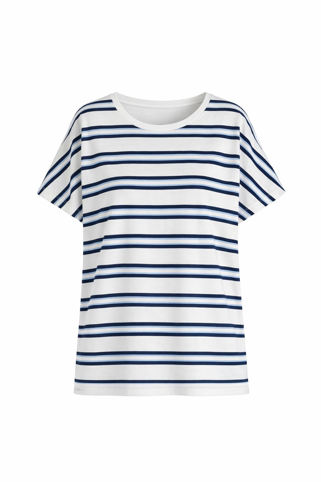 Dieses gestreifte T-Shirt ist ein unkomplizierter Allrounder für den Alltag. Die lockere Passform mit angeschnittenem Arm sorgt für eine lässige Silhouette und macht das Shirt besonders angenehm zu tragen.