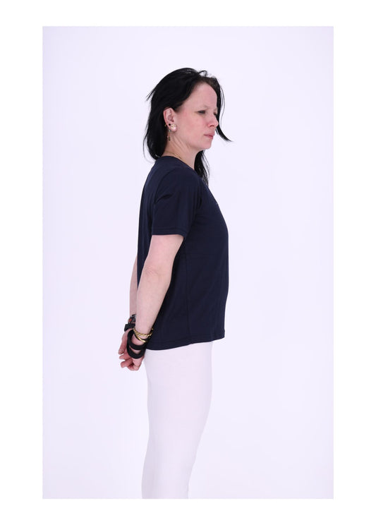 Damen DOB Plissee Shirt,kurzarm,V-Ausschn