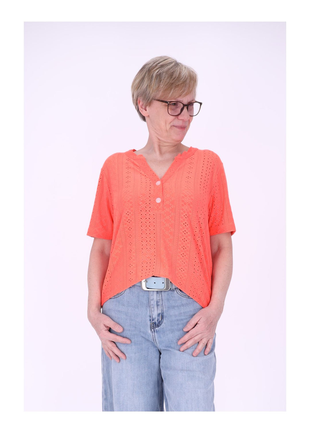 T-Shirt Damen Lochmuster Knopfleiste