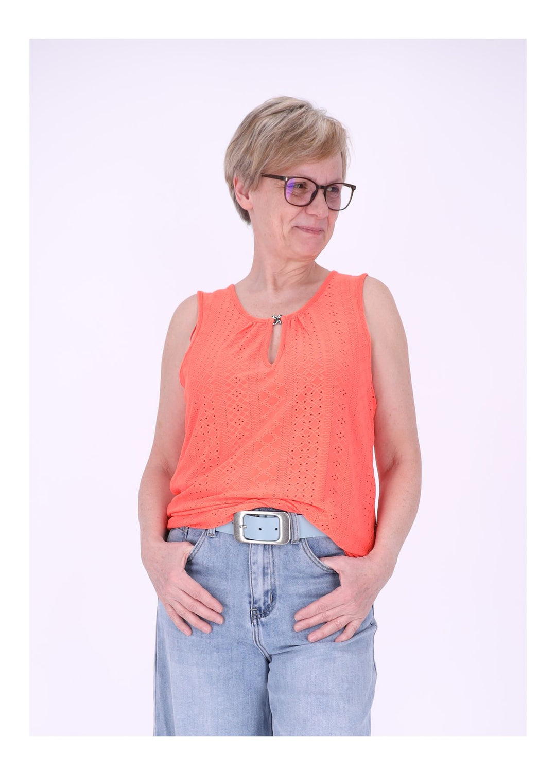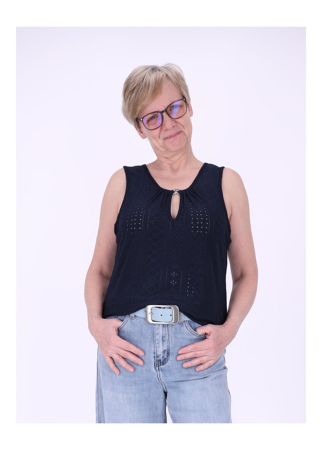 Top Damen Lochmuster Silberschließe