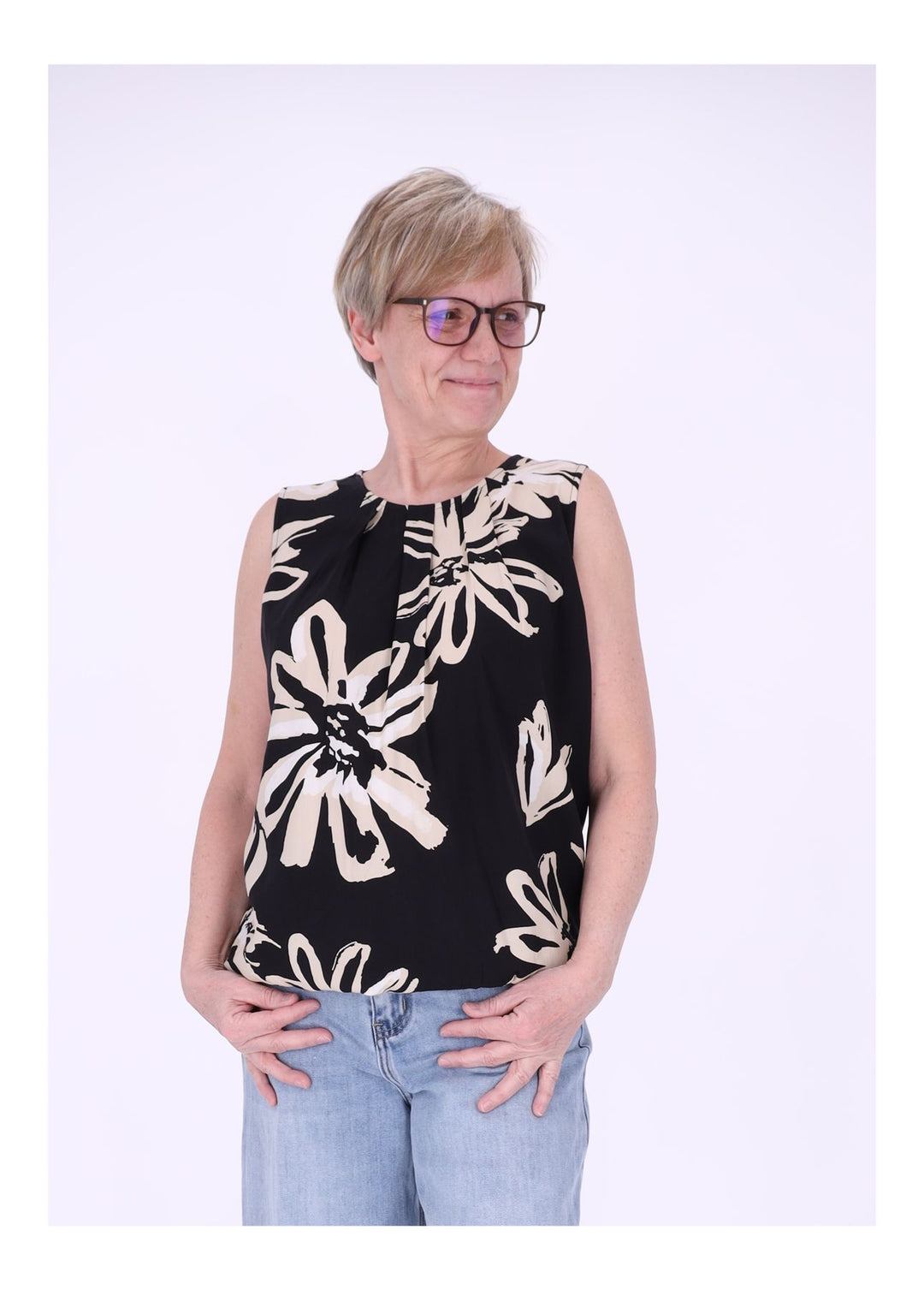 T-Shirt Damen Ohne Arm Gummizug Allover Print