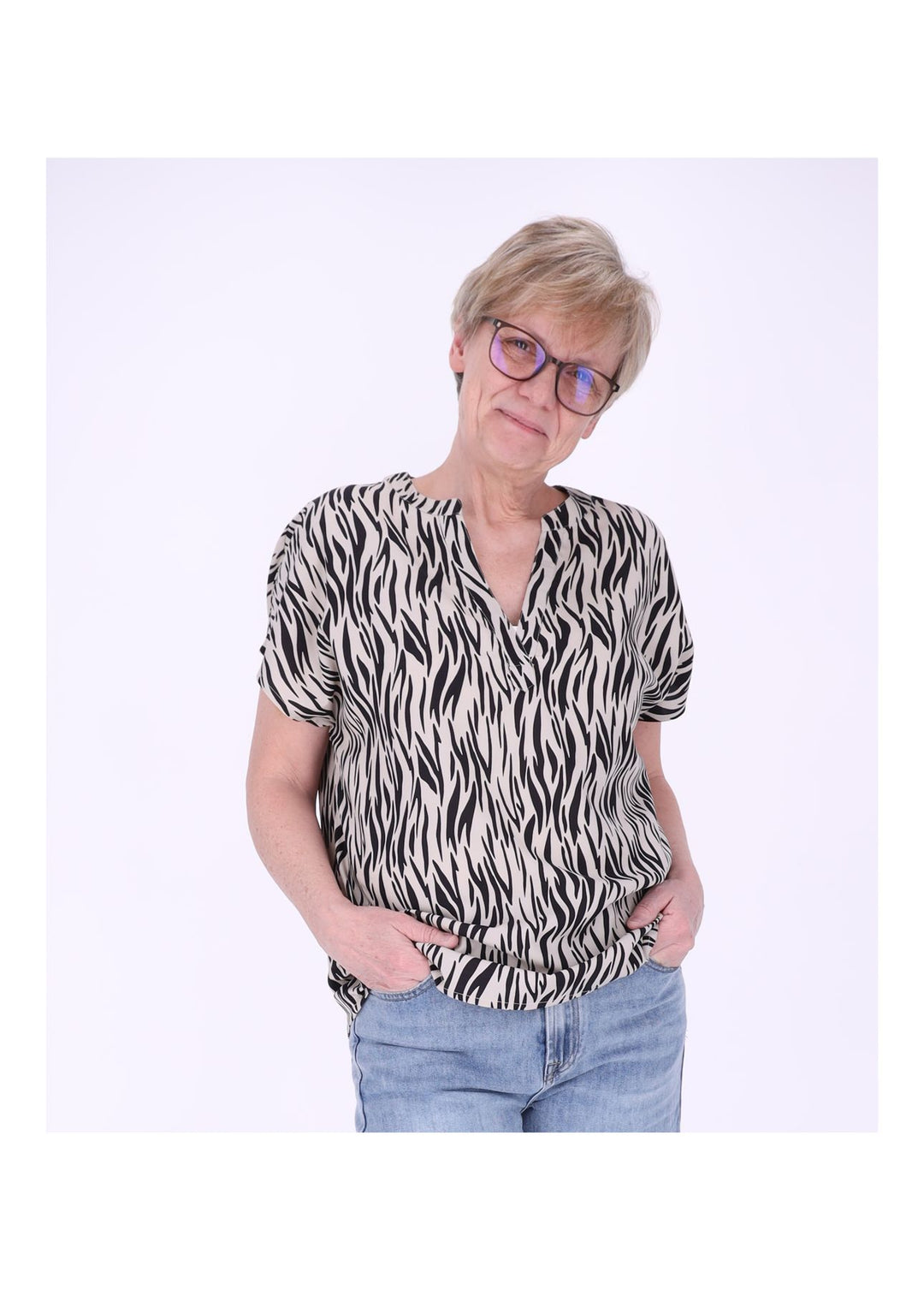 Tunicashirt Damen V Ausschnitt Alloverdruck
