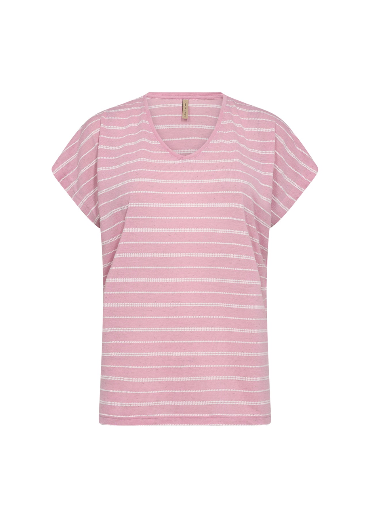 SC-Defne 1 ist ein lässiges T-Shirt aus einer Mischung aus recyceltem Polyester, Leinen und Viskose. Das T-Shirt hat einen schmeichelhaften V-Ausschnitt, kurze Ärmel, eine normale Passform und einen Streifendruck. Kombinieren Sie dieses schöne T-Shirt mit einem Jeansrock und Sneakers für einen sportlichen Alltagslook.