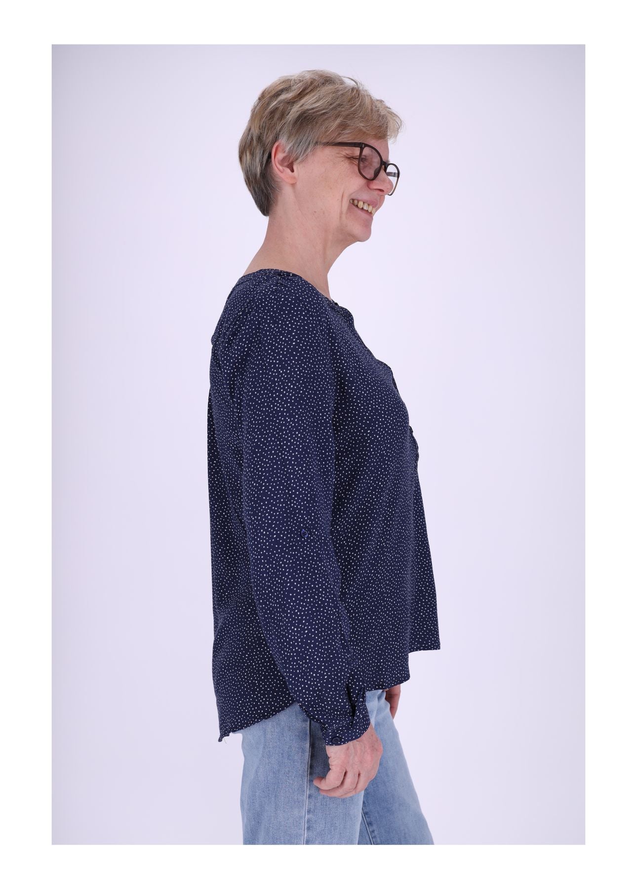 Der fröhliche Punkte-Print setzt verspielte Akzente, und der zarte Stoff aus 100 % Viskose sorgt für ein wunderbar leichtes Tragegefühl. Zudem ist dieses Blusenshirt nach dem OEKO-TEX® Standard 100 zertifiziert – schadstoffgeprüft, hautfreundlich und verantwortungsvoll gefertigt.