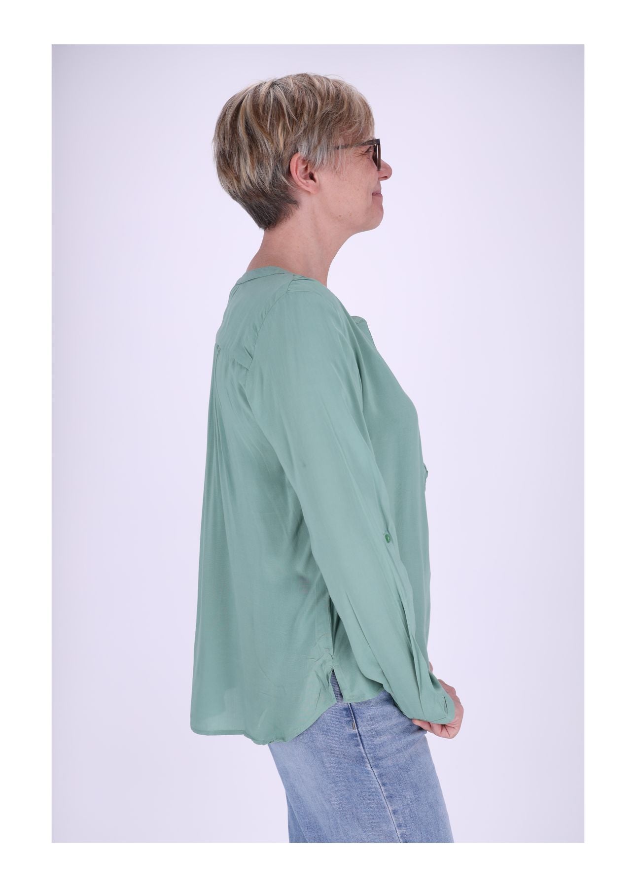 Die langen Ärmel lassen sich unkompliziert krempeln und fixieren – perfekt, um deinen Look nach Lust und Laune zu variieren. Schmale Manschetten verleihen eine elegante Note, während das verlängerte Rückenteil mit kleinen Seitenschlitzen für eine schmeichelhafte Passform und Bewegungsfreiheit sorgt.