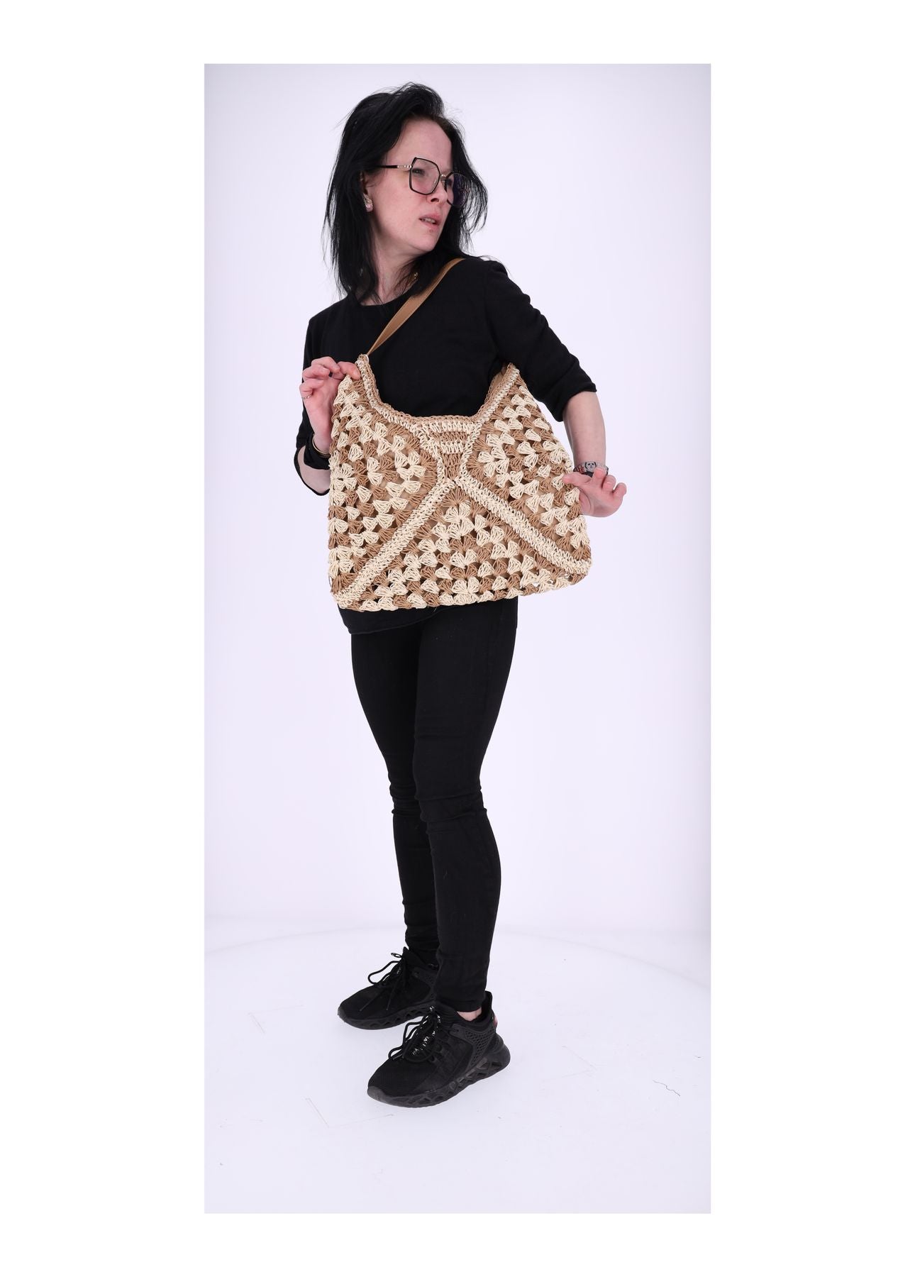 Damen Shopper – Gehäkeltes Bast-Imitat für einen natürlichen Look