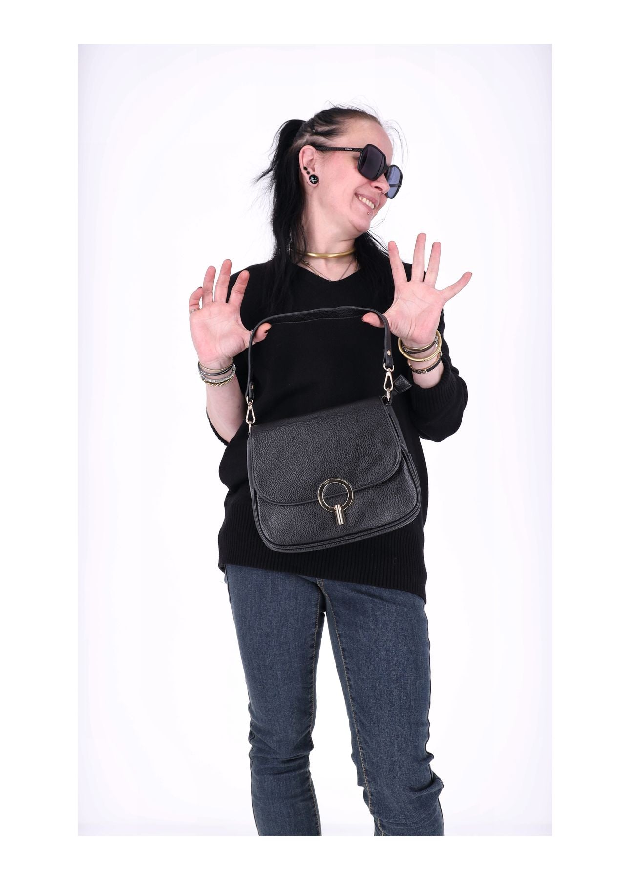 Diese Tasche ist ein Must-Have für moderne, urbane Frauen, die Stil mit Funktion lieben. Zwei Träger – kurz für die elegante Handtaschen-Variante, lang über dem Körper für den lässigen Crossbody-Look – passen sich deinem Mood an. Die goldenen Details – Reißverschlüsse, Ösen, Karabiner und der pfiffige Drehverschluss – setzen luxuriöse Akzente und machen dich zum Hingucker.