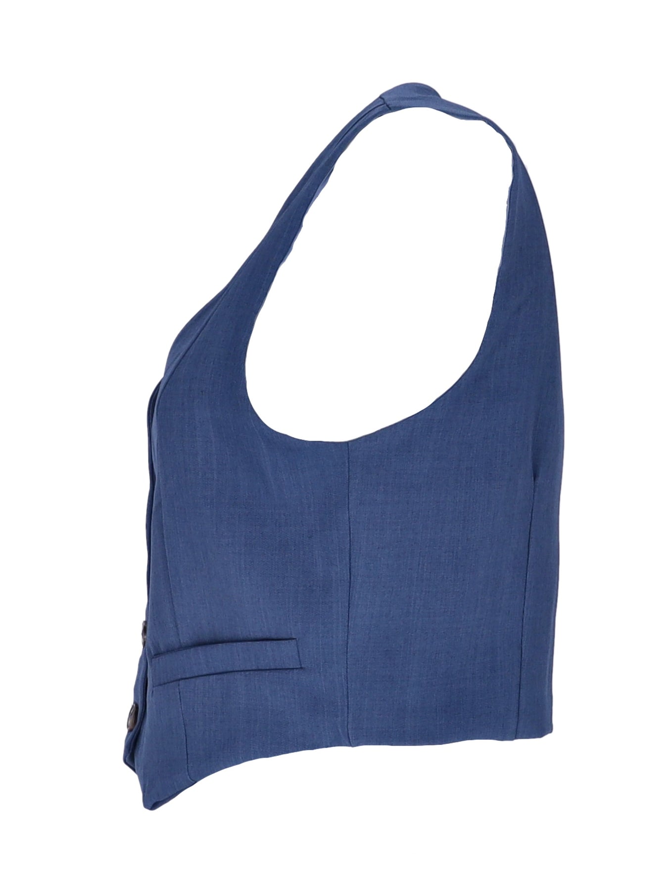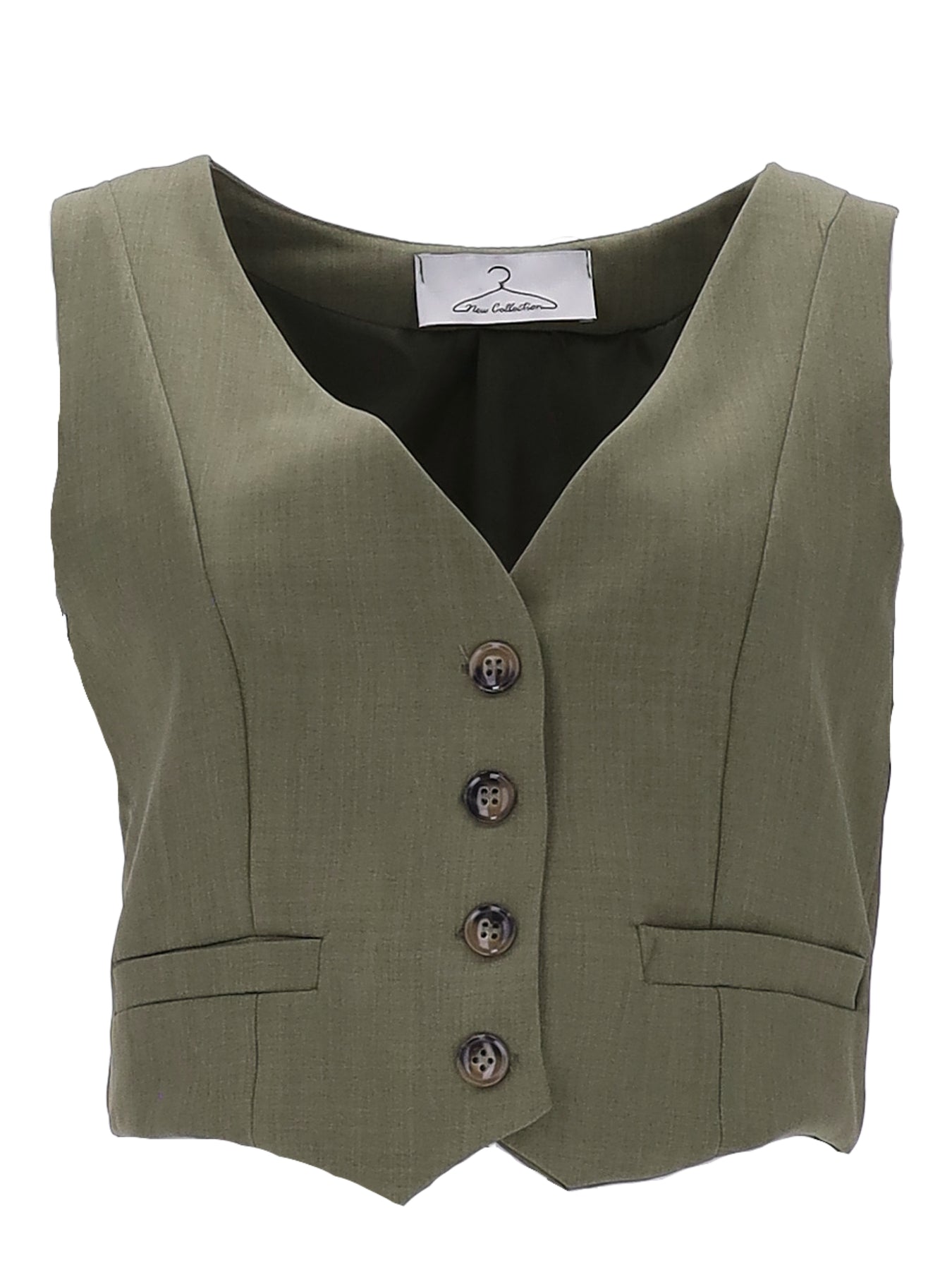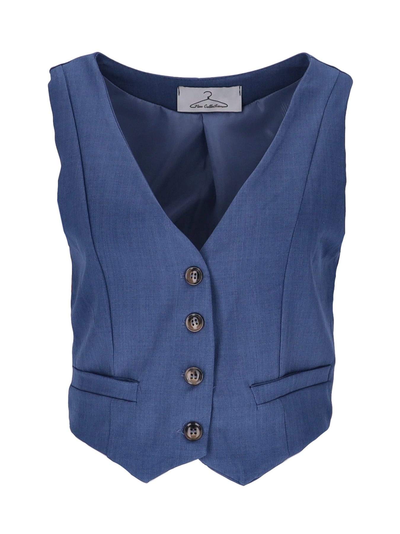 Unsere Damen Kurzweste ist das ultimative Accessoire für einen eleganten und anspruchsvollen Look. Mit ihrer klassischen Passform und den raffinierten Details ist sie die perfekte Ergänzung zu Ihrer Anzughose und Ihrem Blazer.Die Weste ist sorgfältig gestaltet, um Ihren Stil zu unterstreichen und Ihnen einen Hauch von Raffinesse zu verleihen. Die hochwertigen Knöpfe verleihen ihr einen Hauch von Eleganz und machen sie zu einem zeitlosen Stück, das in keiner Garderobe fehlen sollte.Ihre vielseitige Natur ermöglicht es Ihnen, sie zu einer Vielzahl von Outfits zu tragen - sei es zu einem formellen Geschäftstreffen oder einem eleganten Abendessen. Kombinieren Sie sie mit einer Anzughose und einem Blazer für einen klassischen Look oder tragen Sie sie über einem Kleid für einen femininen Touch.