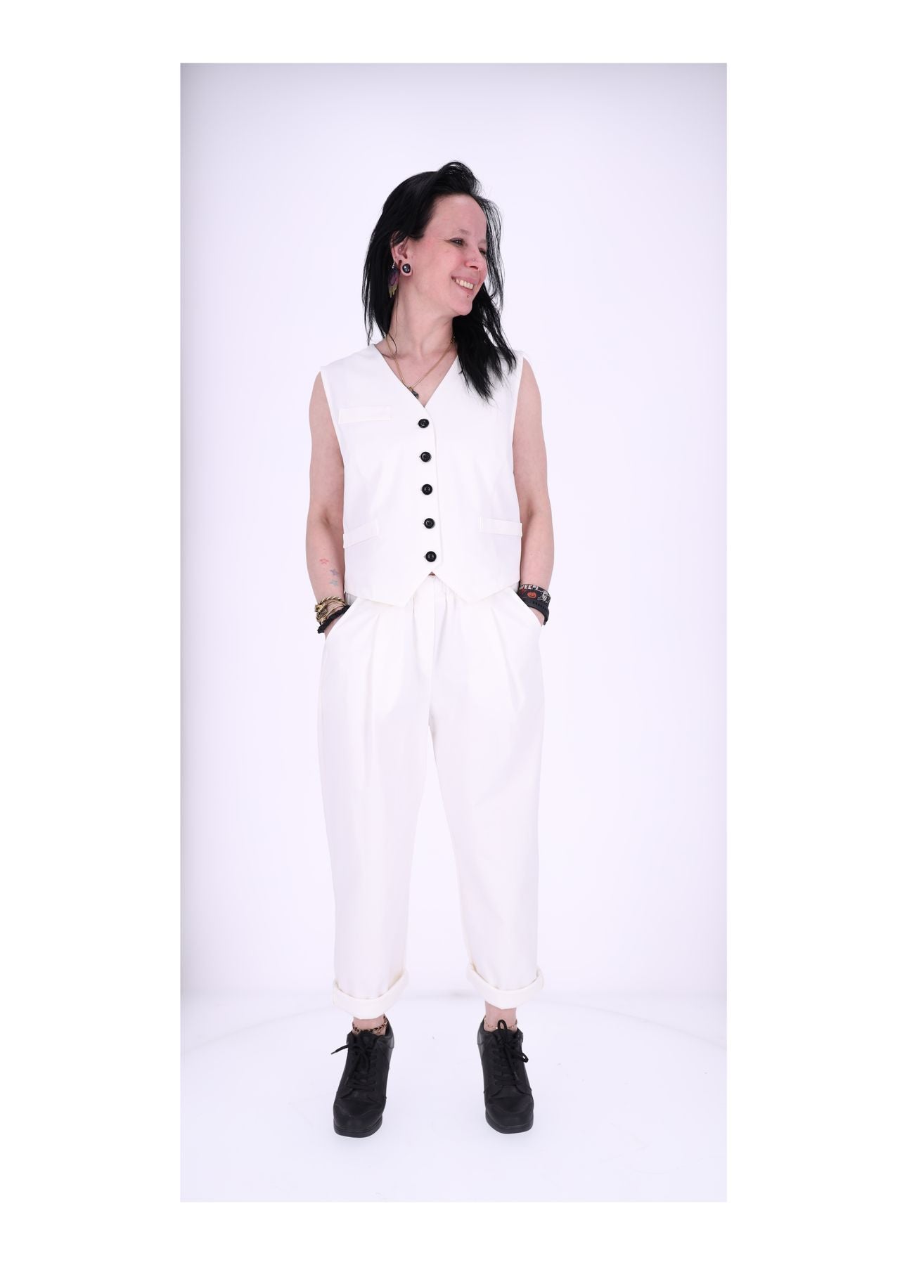 Diese stilvolle Damen Weste überzeugt durch ihren klassischen Schnitt und raffinierte Details. Die durchgehende Knopfschließe sorgt für ein elegantes Erscheinungsbild und ermöglicht ein einfaches An- und Ausziehen. Zwei dekorative Taschen auf der Vorderseite verleihen der Weste eine modische Note, während der verstellbare Riegel am Rücken eine individuelle Passform und feminine Silhouette ermöglicht. Ideal kombinierbar – ob lässig zur Jeans oder schick über einer Bluse – diese Weste ist ein vielseitiges Must-have für jede Garderobe.