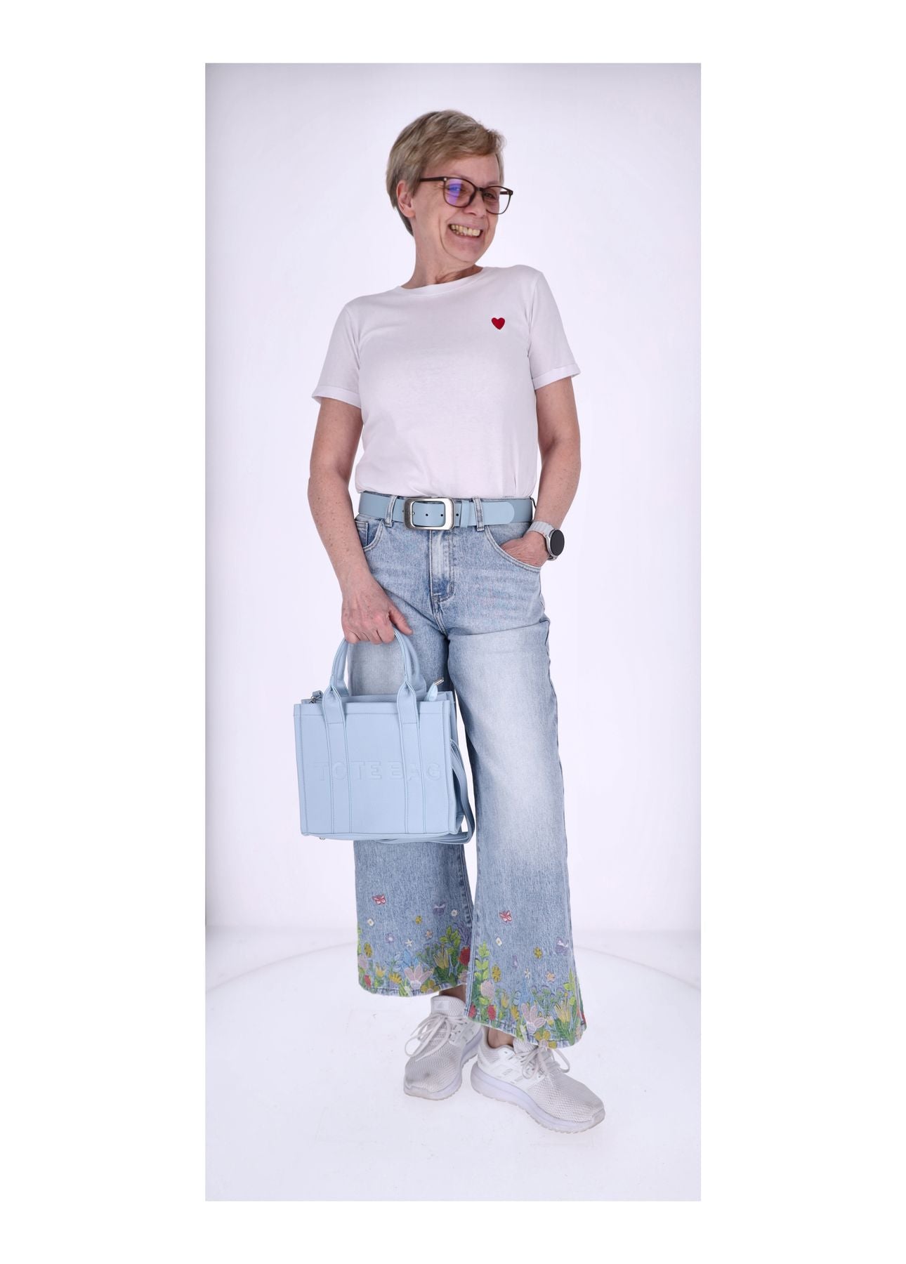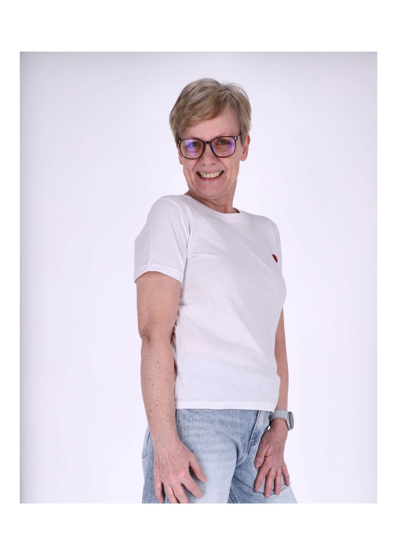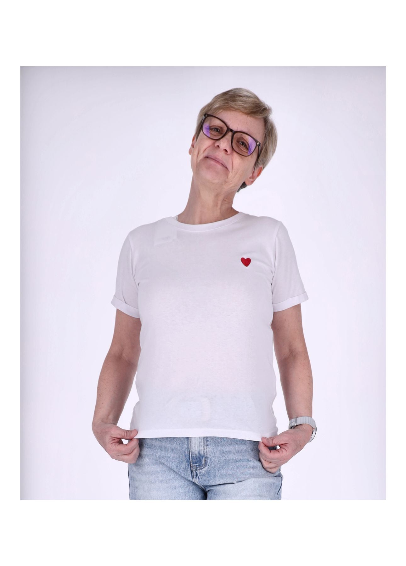 Damen Basic T-Shirt Kurzarm mit Herz-Stick