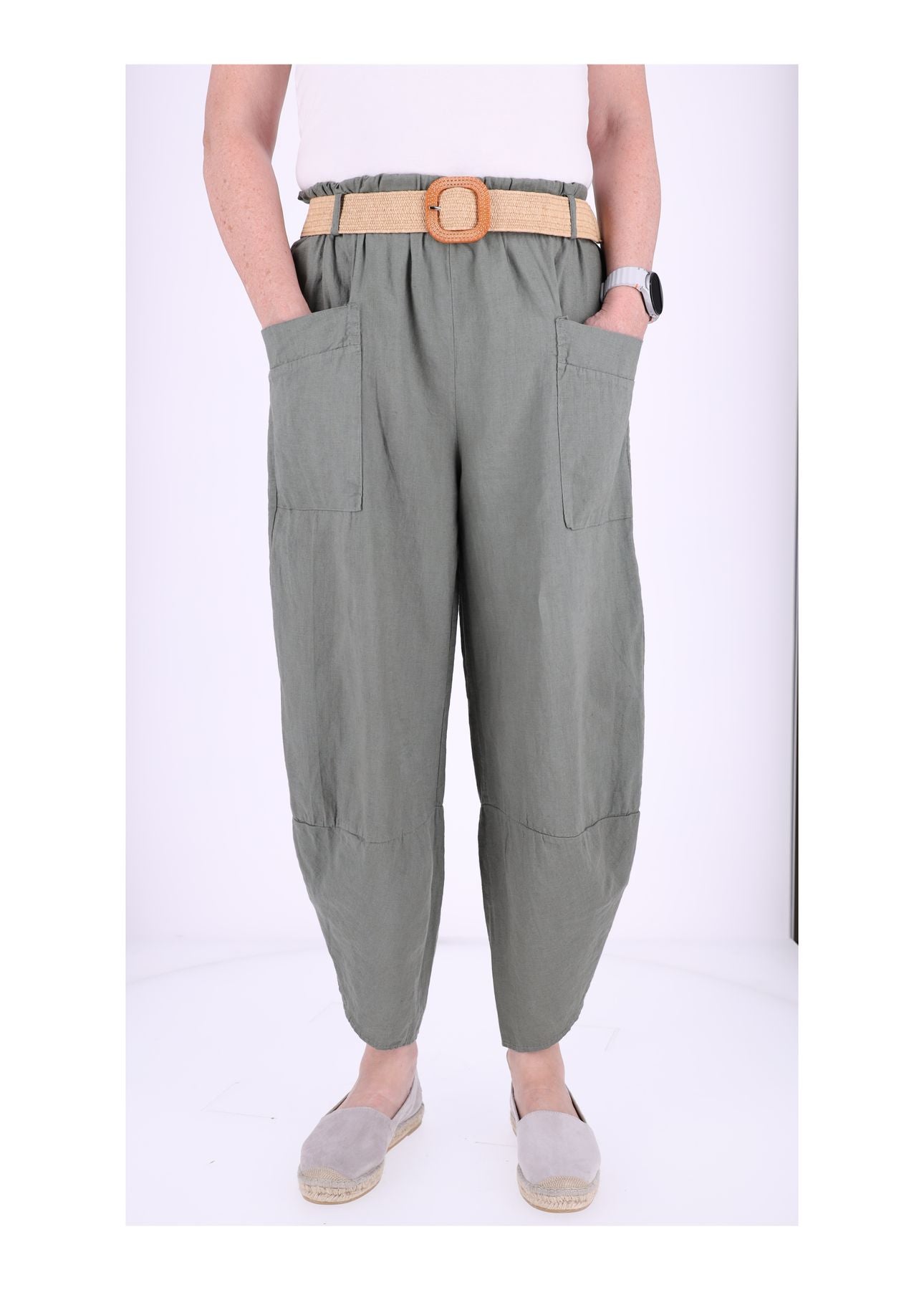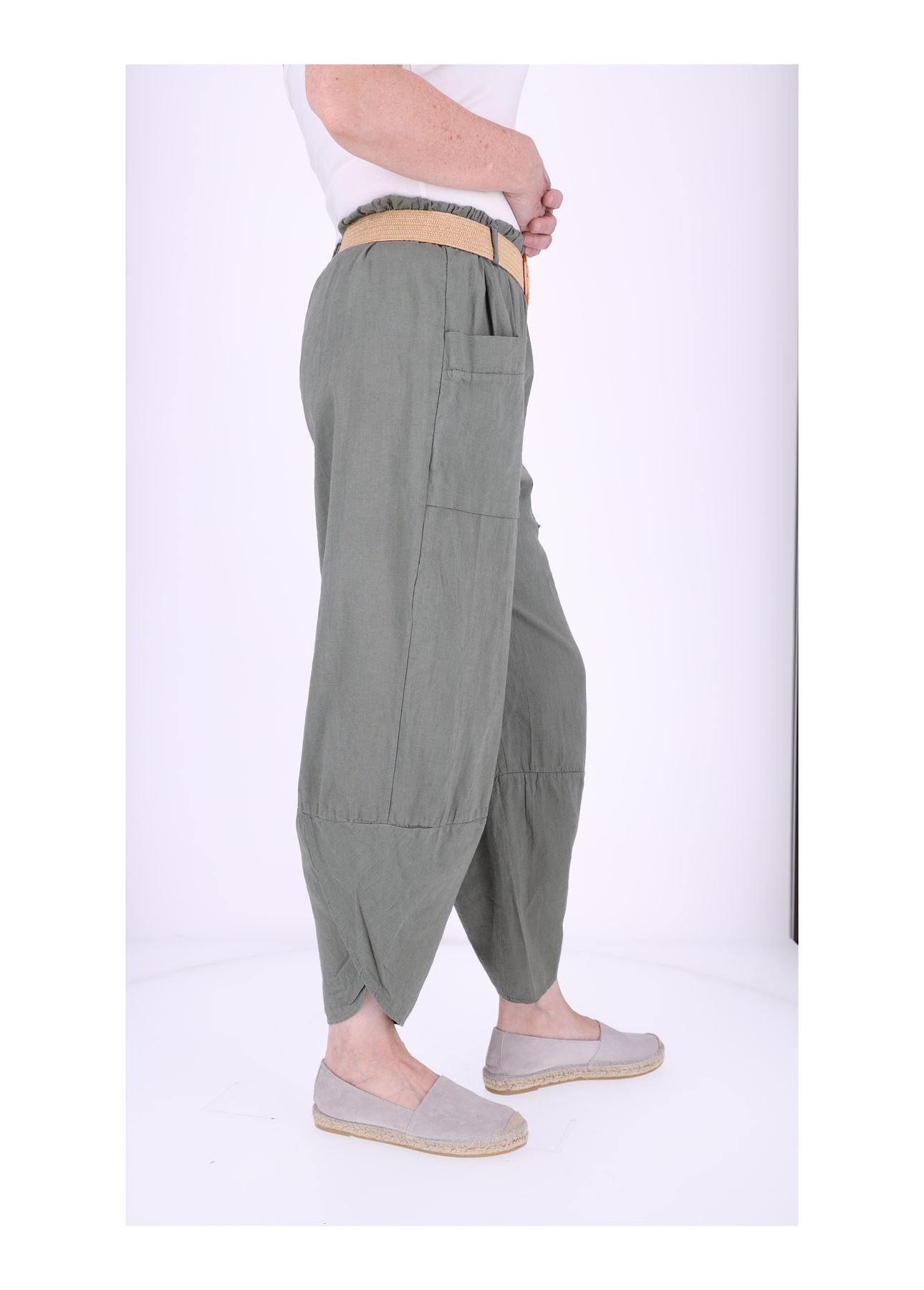 Diese verkürzte Damenhose aus hochwertigem Leinen-Baumwoll-Mix ist der perfekte Begleiter für warme Tage! Der lockere Schnitt, das natürliche Material und der elastische Bund sorgen für ein herrlich bequemes Tragegefühl – und lassen dich dabei trotzdem absolut stilvoll aussehen.