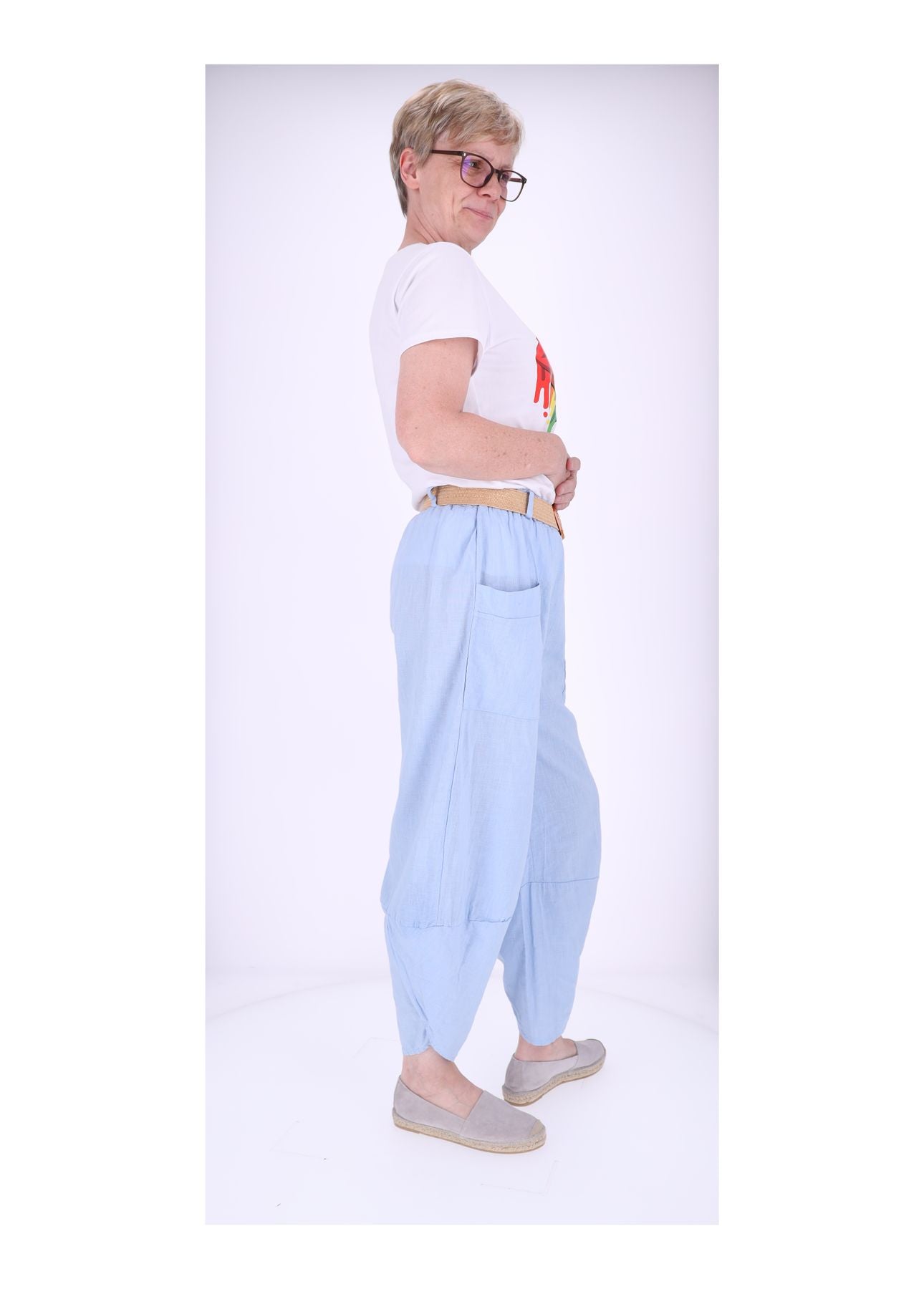Styling-Tipp: Kombiniere die Hose mit einem lockeren Top oder einem T-Shirt im Oversize-Look und trage dazu flache Sandalen oder Espadrilles. Eine Basttasche und eine Sonnenbrille runden dein sommerlich-leichtes Outfit perfekt ab – bereit für Stadtbummel, Urlaub oder Gartenparty!