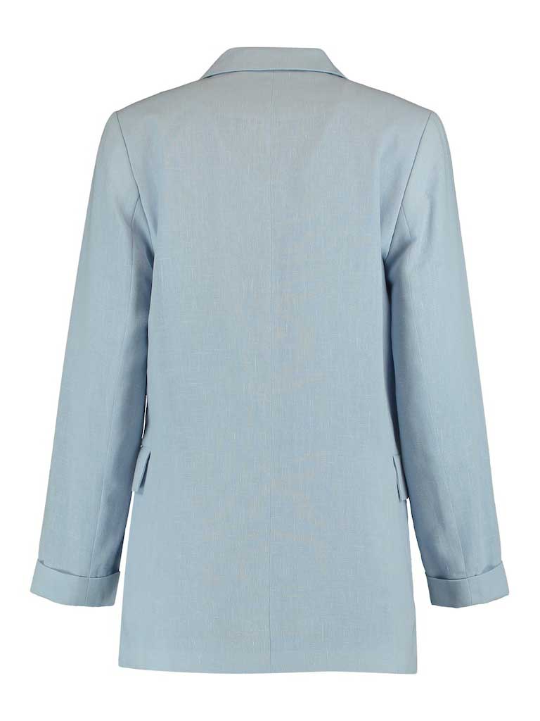 Blazer mit doppelter Knopfleiste, aufgesetzten Taschen und umgekrempelten Ärmeln.