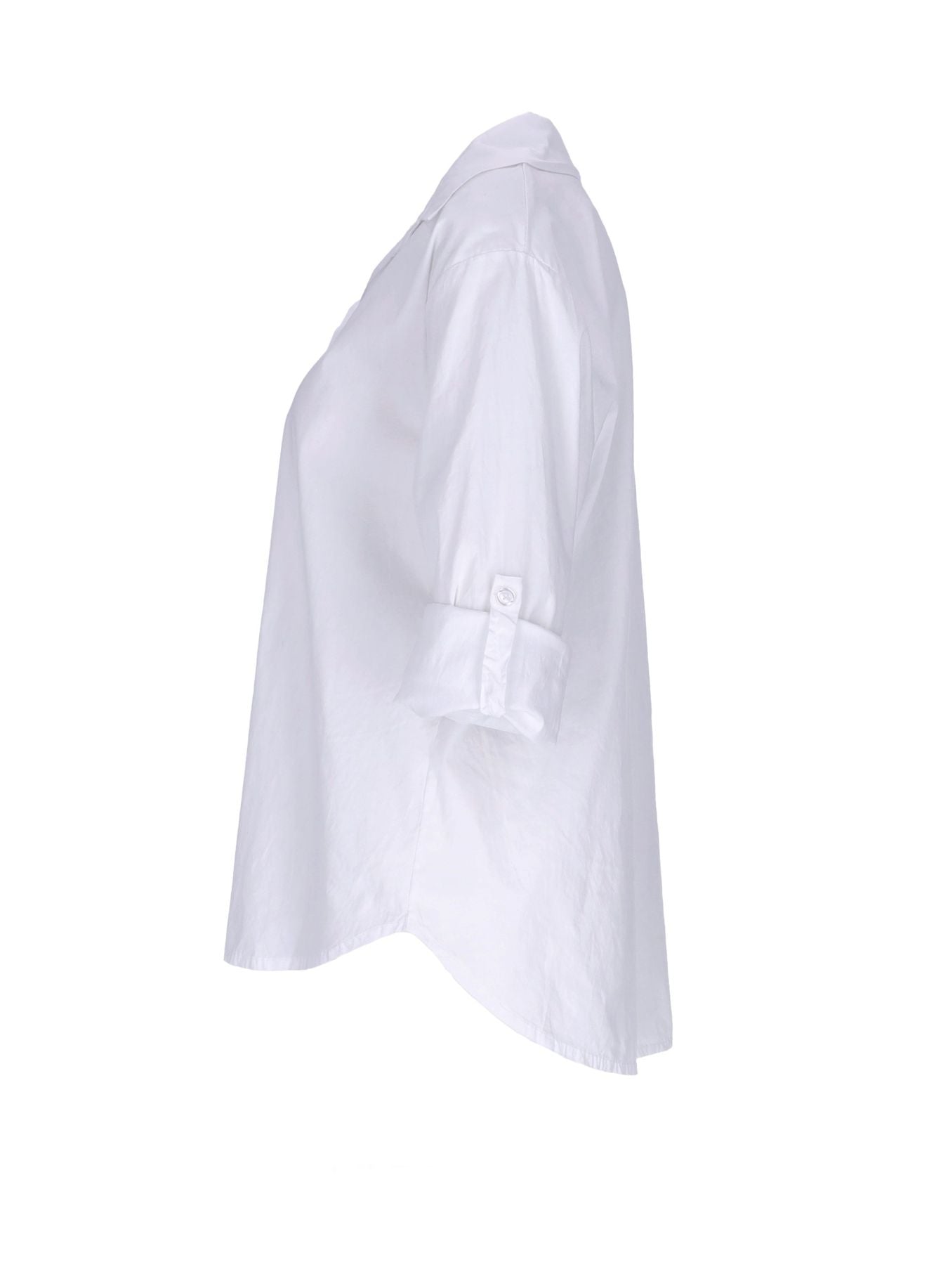 Das verlängerte Rückenteil sorgt für eine moderne, fließende Silhouette und schmeichelt jeder Figur. Die variablen Ärmel lassen sich entweder klassisch lang tragen oder lässig hochkrempeln und fixieren – so passt sich die Bluse perfekt deinem persönlichen Stil und jeder Gelegenheit an.