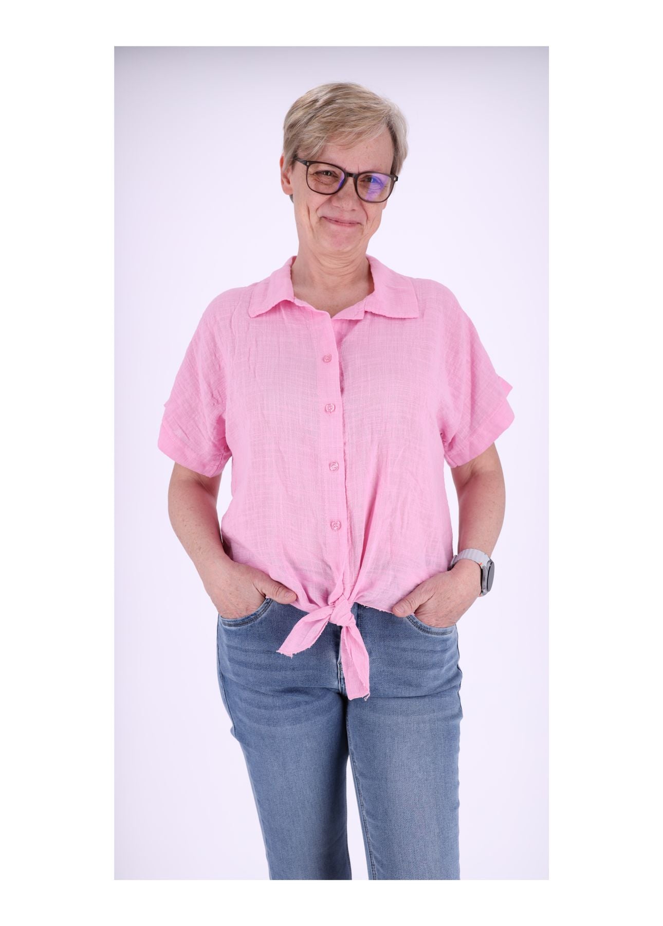 Bluse Damen Kurzarm zum binden Leinenoptik