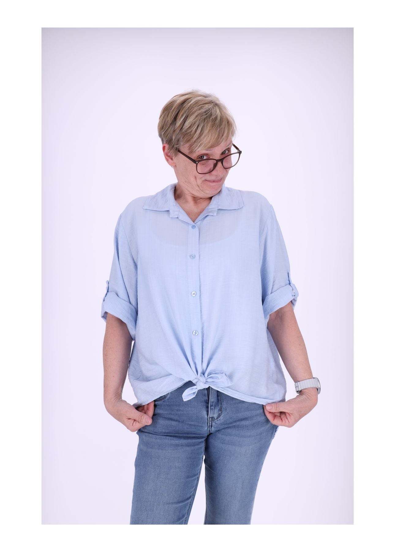 Das längere Rückenteil verleiht der Bluse eine moderne Silhouette und sorgt für zusätzlichen Komfort – ideal für entspannte Sommertage. Mit einer lockeren Passform, die durch den halben Brustumfang von ca. 59 cm und eine Länge von ca. 68 cm vorne sowie ca. 76 cm hinten perfekt zur Geltung kommt, sitzt dieses Modell angenehm und schmeichelhaft.