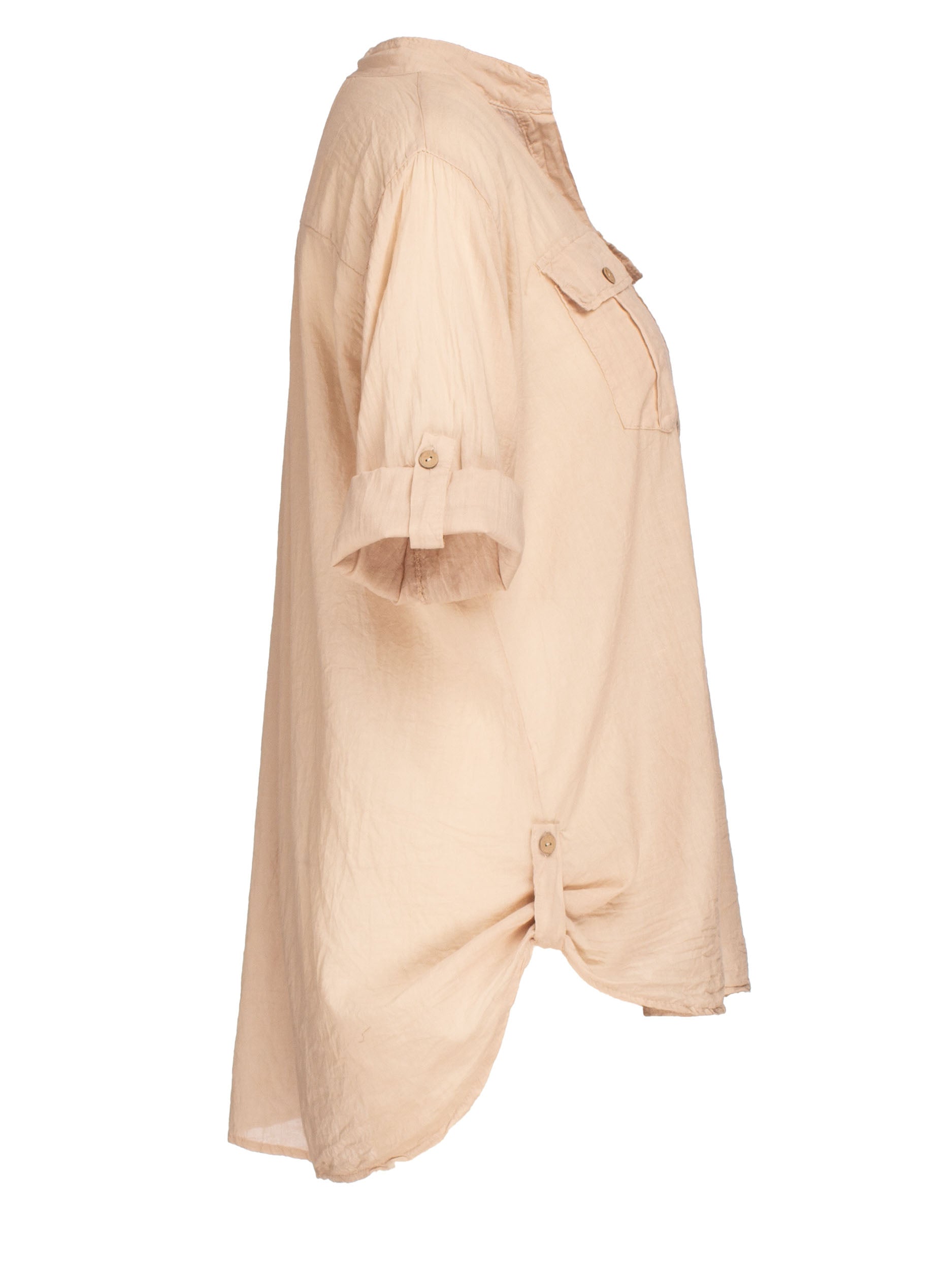 Leichte Baumwollbluse mit Pattentaschen, krempel und fixierbaren Ärmeln und fixierbarer Raffung an beiden Seiten. Diese schöne Bluse ist sportlich schick und passt zu jedem Anlass ob Arbeit oder Freizeit, man ist mit ihr immer gut gekleidet.