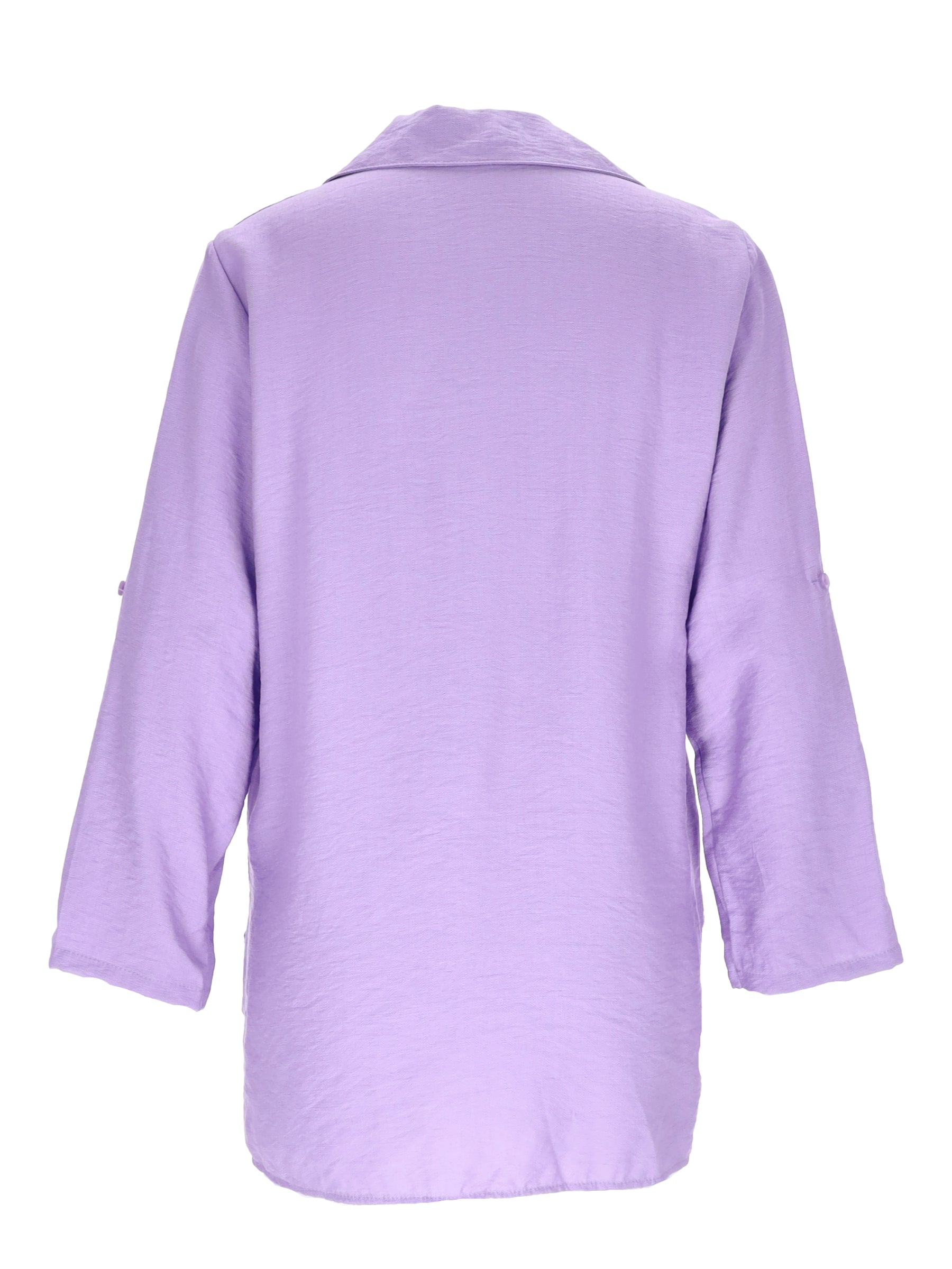 Der V-Ausschnitt und der Kragen verleihen diesem Shirt eine klassische Eleganz und setzen zugleich stilvolle Akzente. Der halbe Arm ist krempelbar und fixierbar, sodass Sie Ihren Look je nach Stimmung und Anlass individuell anpassen können. Das Highlight dieses Shirts ist der hinten längere Schnitt, der eine moderne Silhouette schafft und Ihre Figur vorteilhaft betont. Egal, ob Sie es zu einer eleganten Hose im Büro oder zu Jeans in Ihrer Freizeit tragen, dieses vielseitige Kleidungsstück wird Sie immer perfekt in Szene setzen.