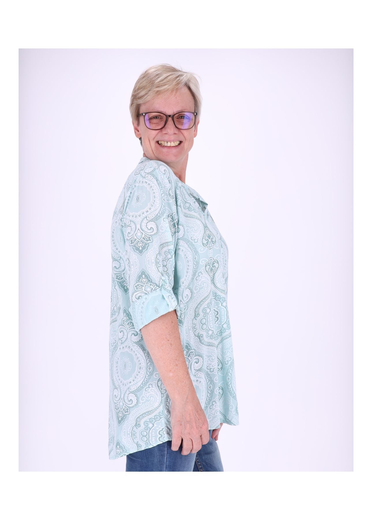 Dieses Damen-Blusenshirt ist der Inbegriff von lässiger Eleganz – unkompliziert, bequem und vielseitig kombinierbar. Der V-Ausschnitt mit dekorativer Knopfleiste verleiht dem Look eine feminine Note, während der lockere Schnitt für Bewegungsfreiheit und Komfort sorgt.