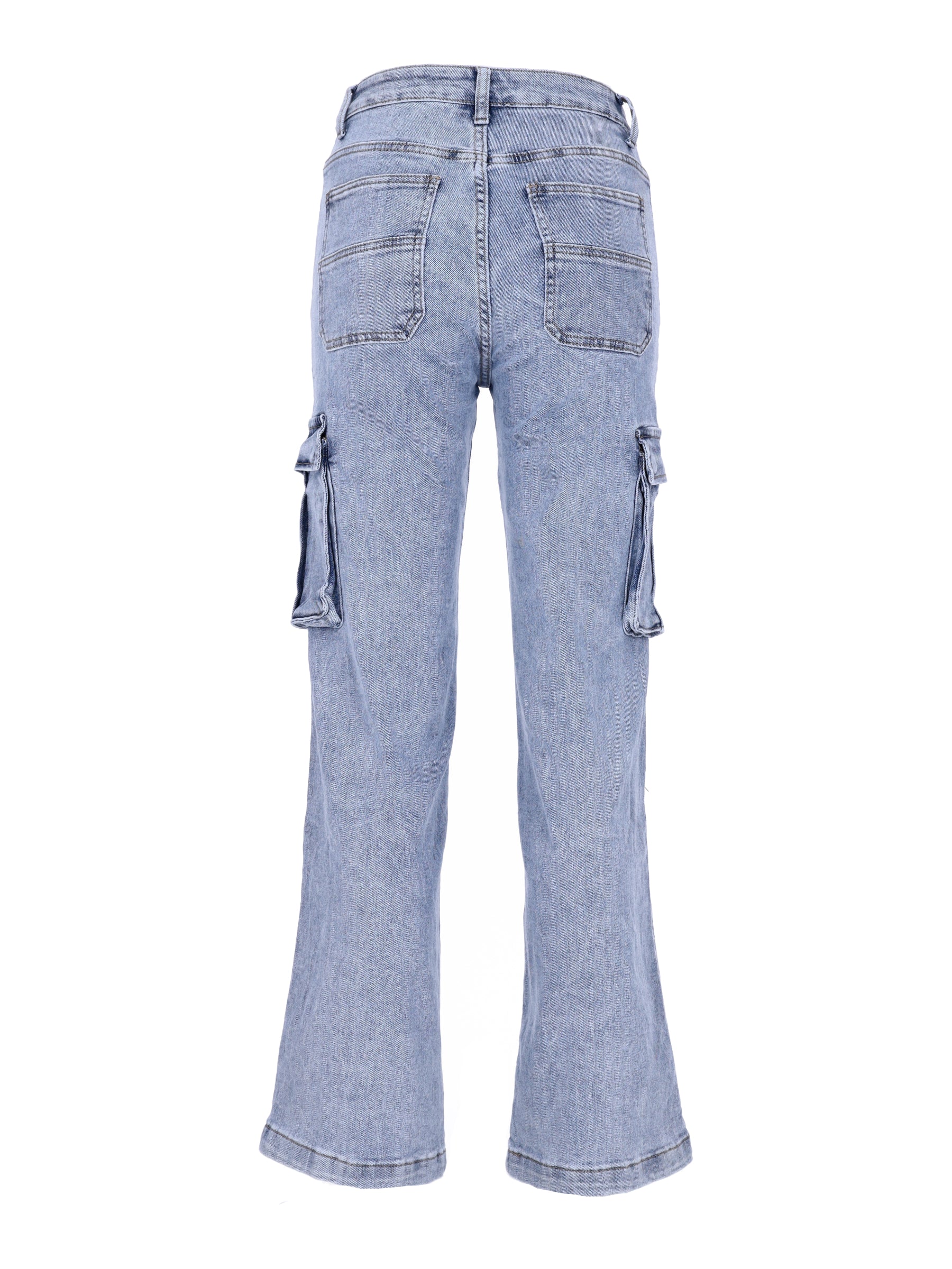 Der Bootcut-Schnitt verleiht der Hose eine trendige und feminine Note, während das ausgestellte Bein Ihre Silhouette schmeichelhaft betont. Diese Passform ist sowohl modern als auch zeitlos und eignet sich perfekt für jeden Anlass. Die Cargo-Details verleihen der Jeans einen lässigen und urbanen Touch. Mit den praktischen Taschen an den Seiten haben Sie ausreichend Stauraum für kleine Essentials und verleihen Ihrem Look eine funktionale Note. Die strapazierfähige Materialqualität sorgt für Langlebigkeit und macht die Hose zu einem zuverlässigen Begleiter für viele Saisons.
