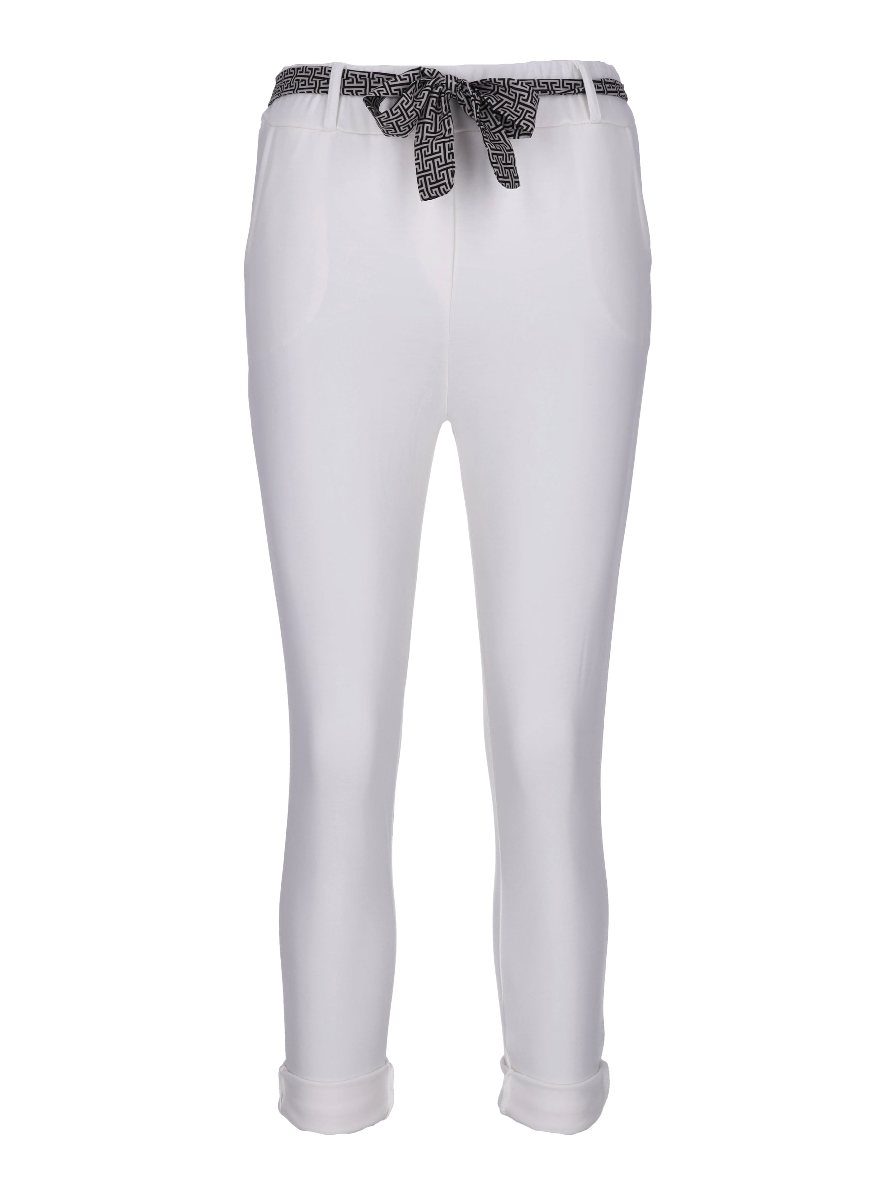 Entdecken Sie unsere hochwertige Damen 7/8 Hose mit dekorativem Gürtel in verschiedenen Farben. Hergestellt aus einem angenehm weichen Stoff, bietet diese Hose den perfekten Mix aus Stil und Komfort.Der dekorative Gürtel betont Ihre Taille und verleiht jedem Outfit eine besondere Note. Mit einer Auswahl an Farben können Sie Ihren persönlichen Stil ausdrücken und für jeden Anlass das passende Outfit zusammenstellen.