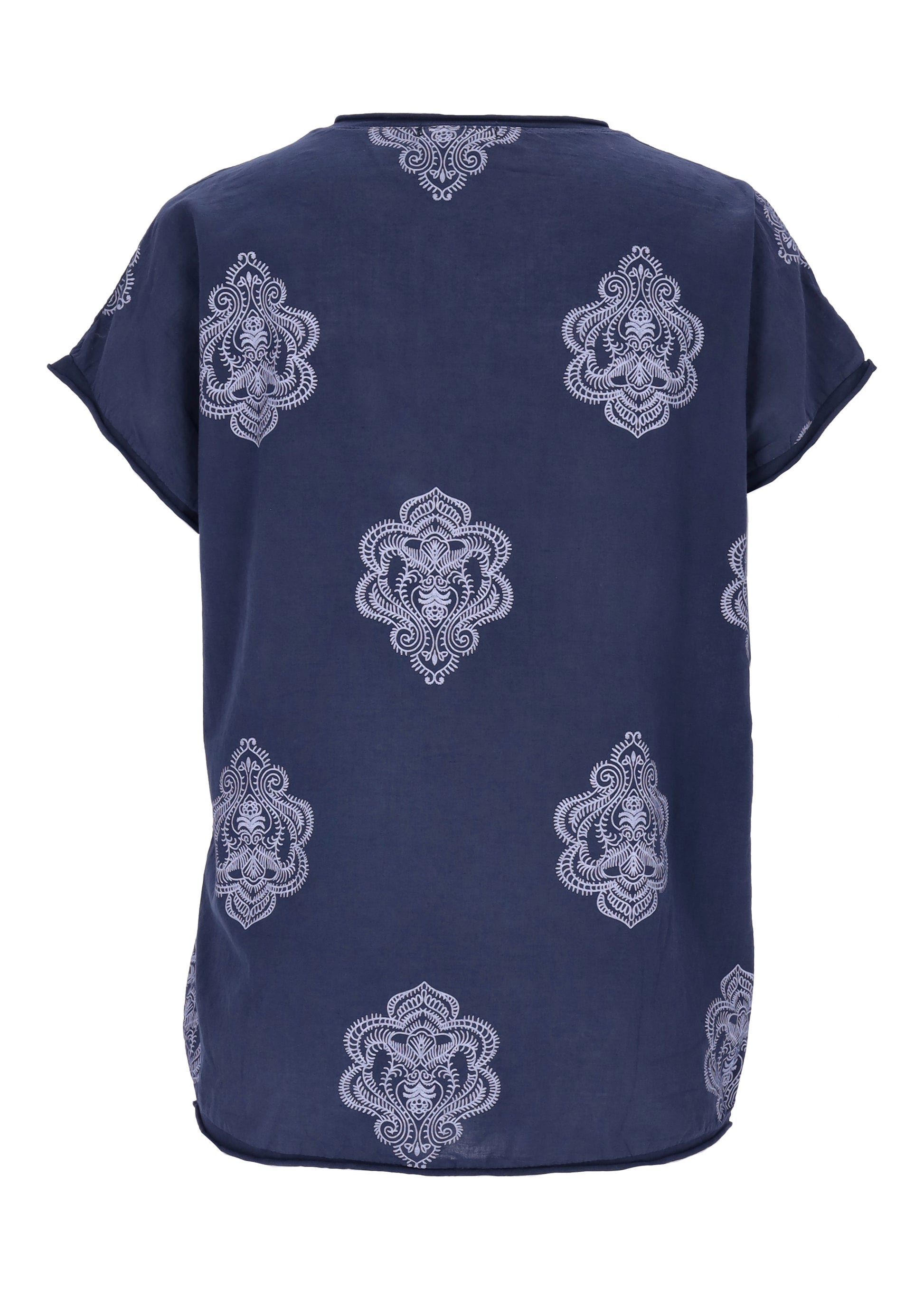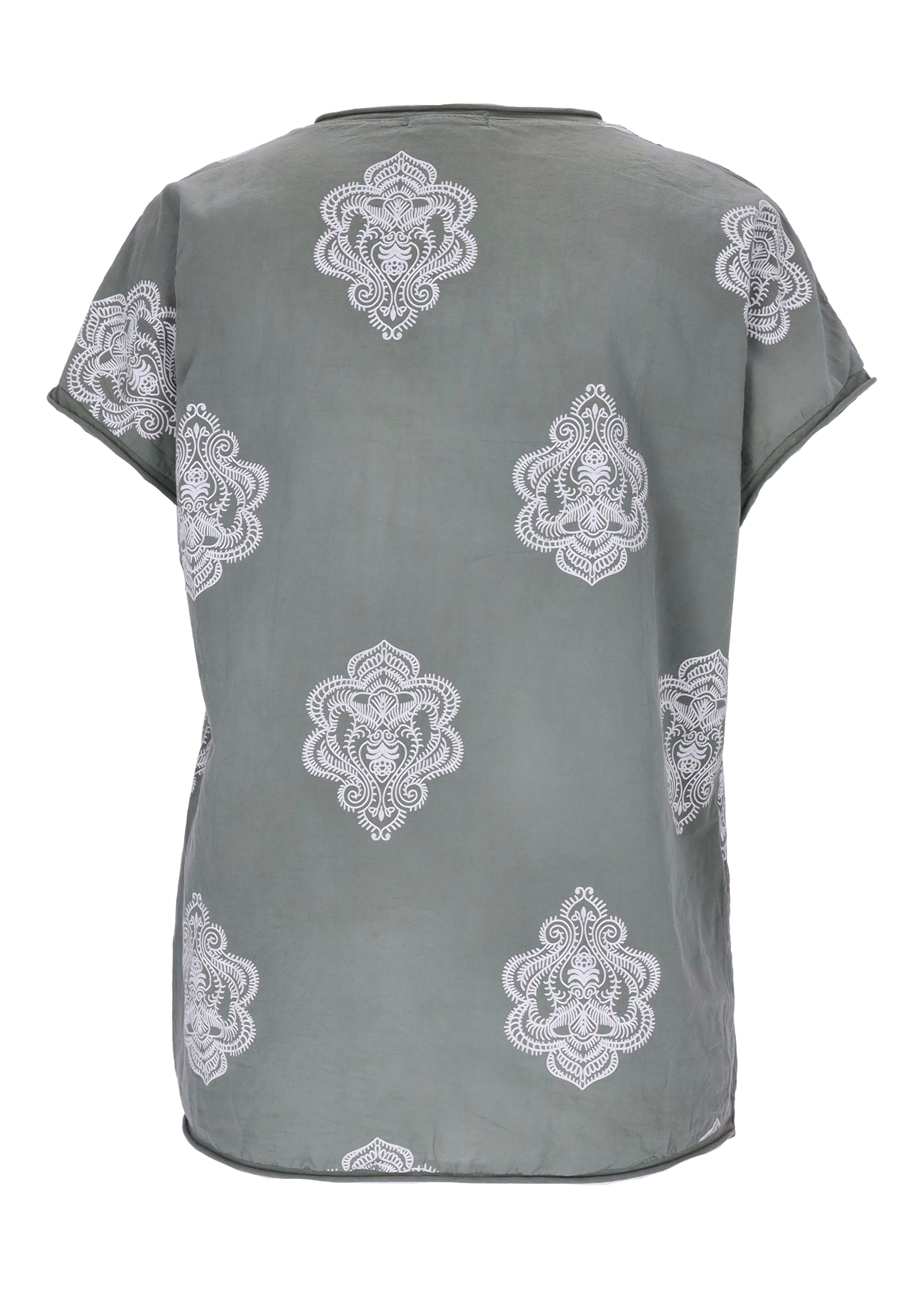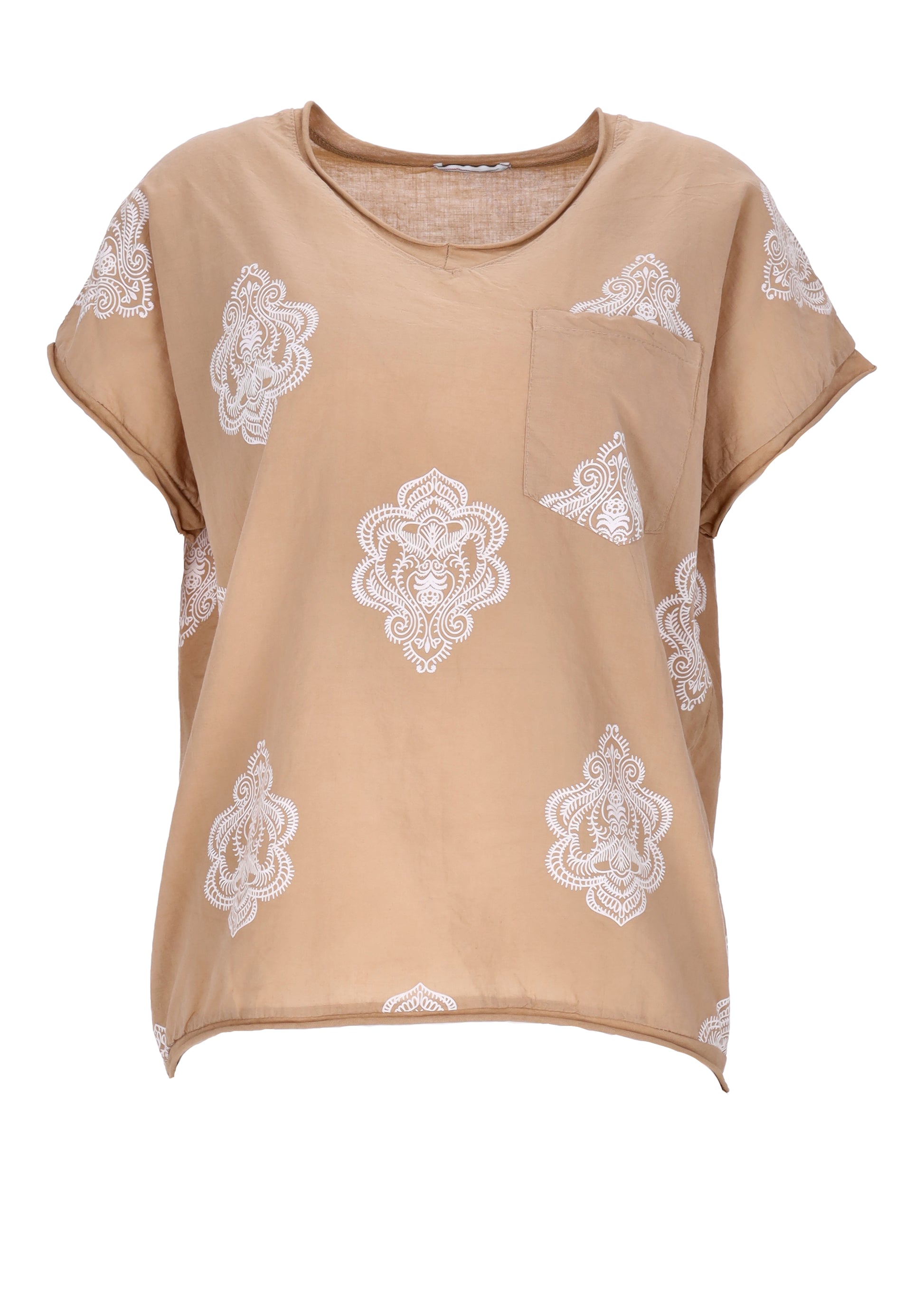 Die Brusttasche verleiht diesem Shirt eine praktische Note, während das Printmuster einen modischen Akzent setzt und diesem Shirt einen individuellen Look verleiht. Die weiche Textur schmiegt sich sanft an Ihre Haut und sorgt für ein angenehmes Trageerlebnis. Dieses Shirt ist vielseitig kombinierbar und die perfekte Wahl für verschiedene Anlässe. Tragen Sie es lässig zur Jeans oder kombinieren Sie es mit einer schicken Hose für einen eleganten Look.