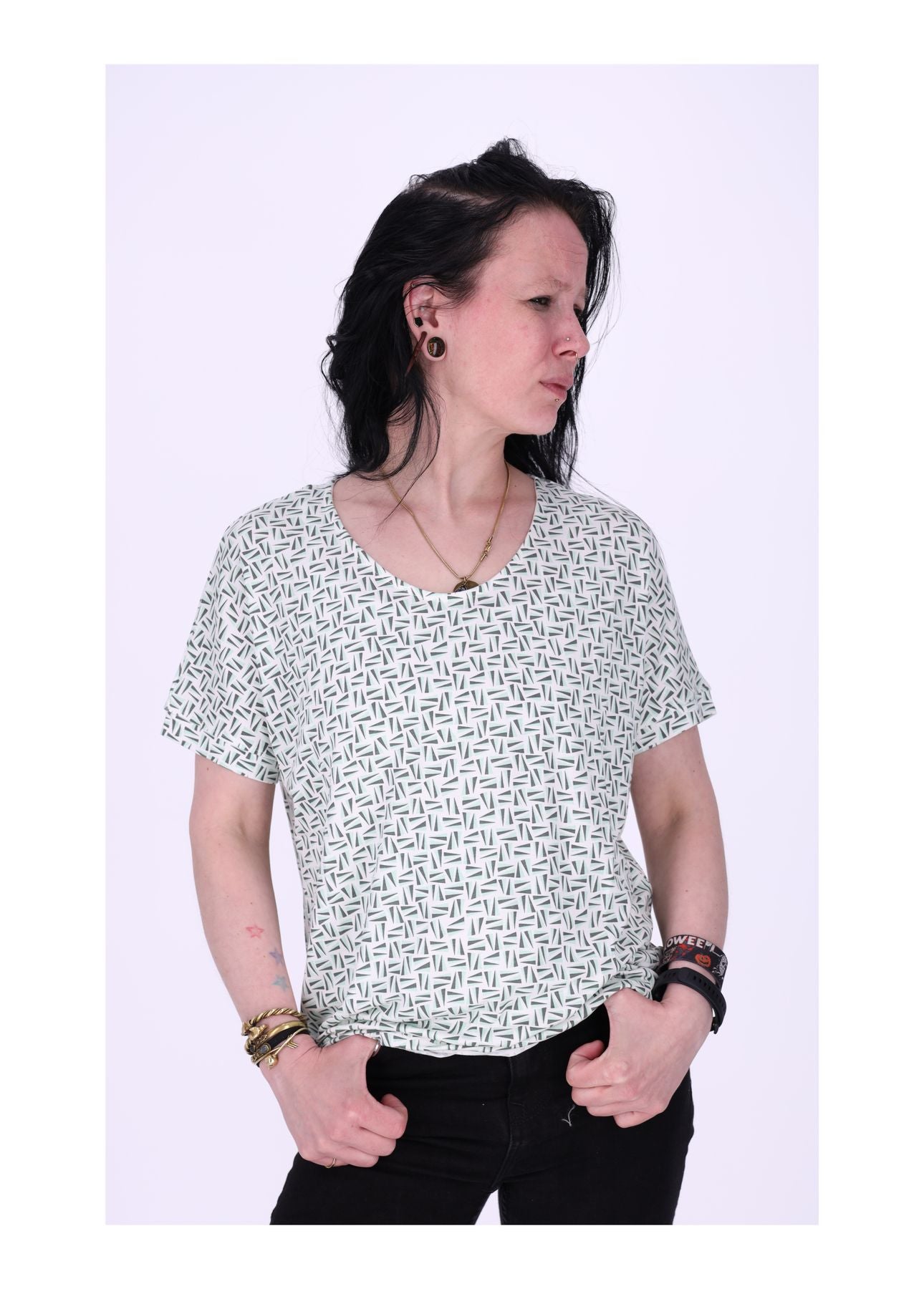 ? Damen T-Shirt mit geometrischem Muster – weich, modern & bequem mit Gummibund