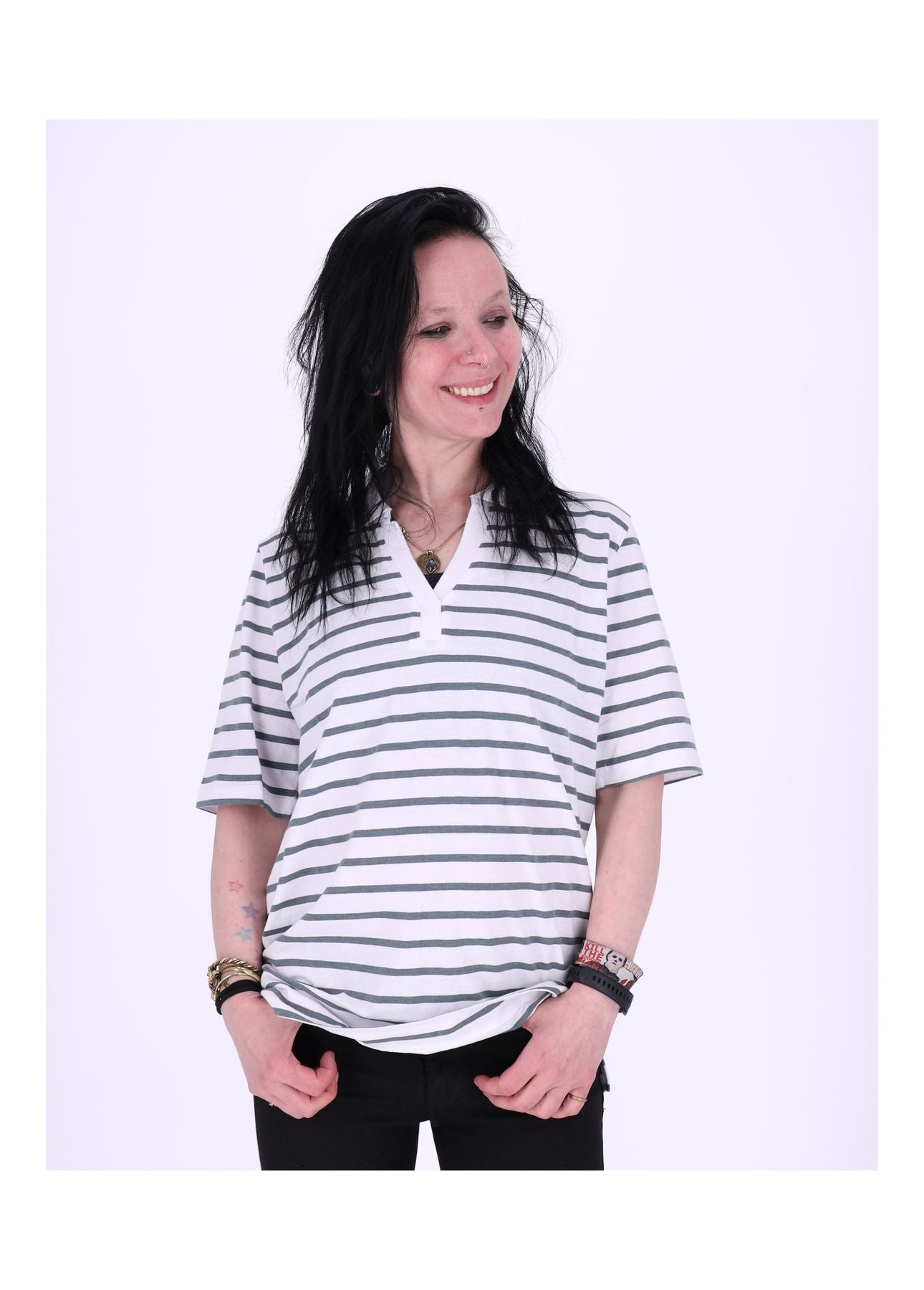 Dieses gestreifte Damen Poloshirt kombiniert klassischen Chic mit sportlichem Flair. Der typische Polokragen mit Knopfleiste und das frische Streifenmuster machen es zu einem vielseitigen Begleiter für Alltag und Freizeit.