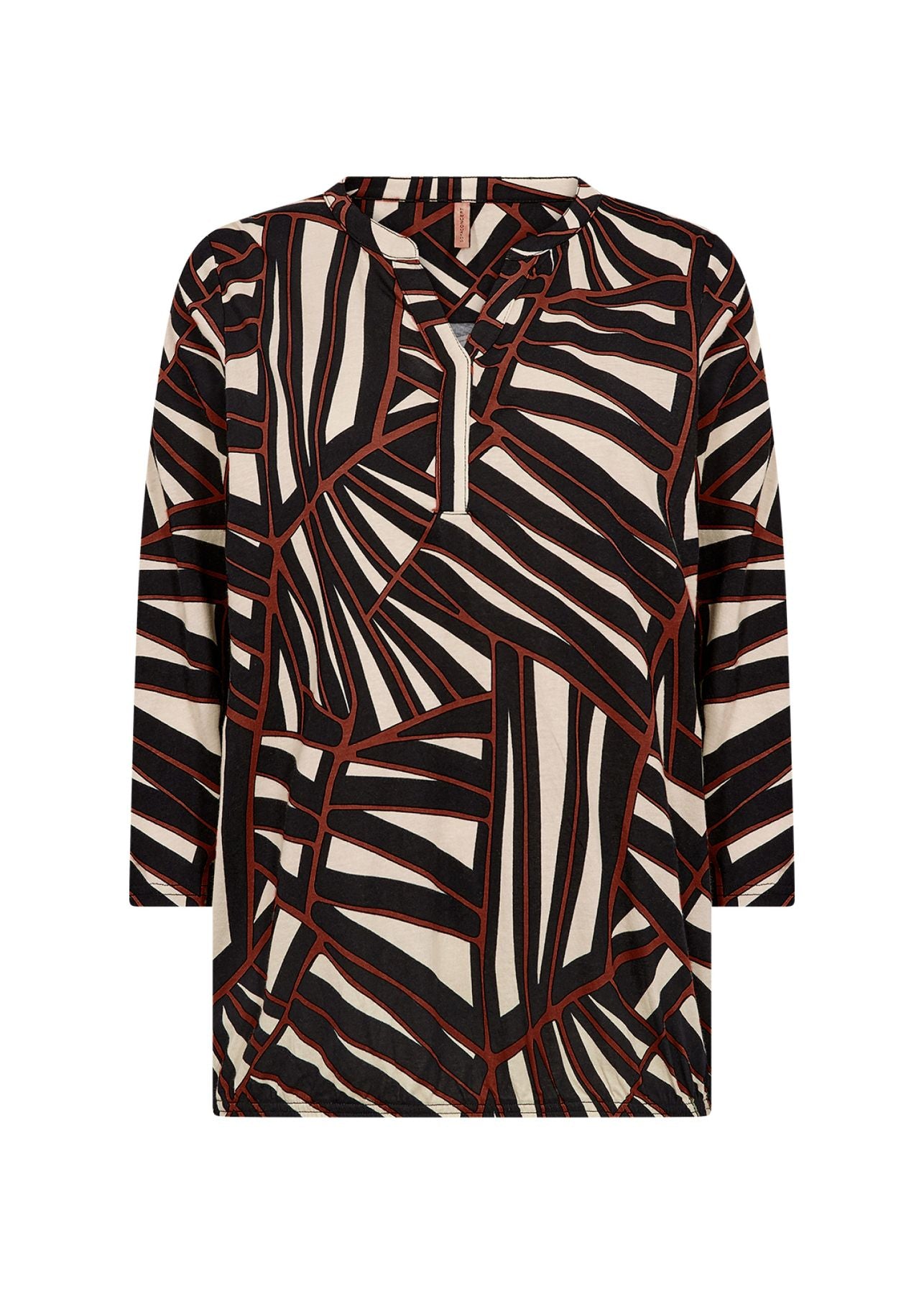 SC-FELICITY AOP 510 ist eine bequeme Bluse aus einer Mischung aus 50% Bio-Baumwolle und 50% Viskose. Sie hat eine lockere Passform, einen V-förmigen Ausschnitt und ist mit einem abstrakten geometrischen Muster versehen. Dieses Oberteil kann mit Jeans für einen lässigen Look oder mit einer maßgeschneiderten Hose für ein formelleres Outfit getragen werden.