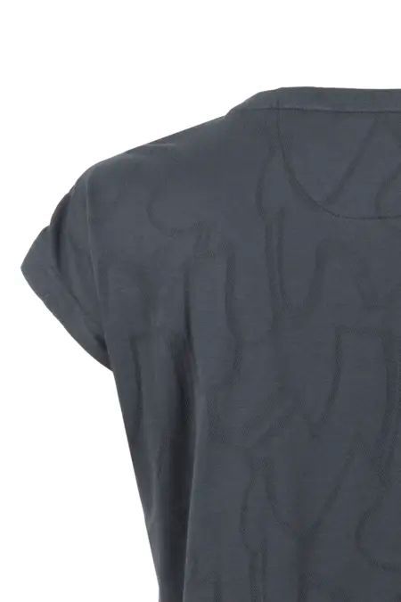Dieses Damen T-Shirt begeistert mit einem leicht durchscheinenden Muster, das dem Look eine edle Note verleiht. Ein dezenter Schlitz am Vorderteil sorgt für einen femininen Akzent – luftig, leicht und stilvoll zugleich.