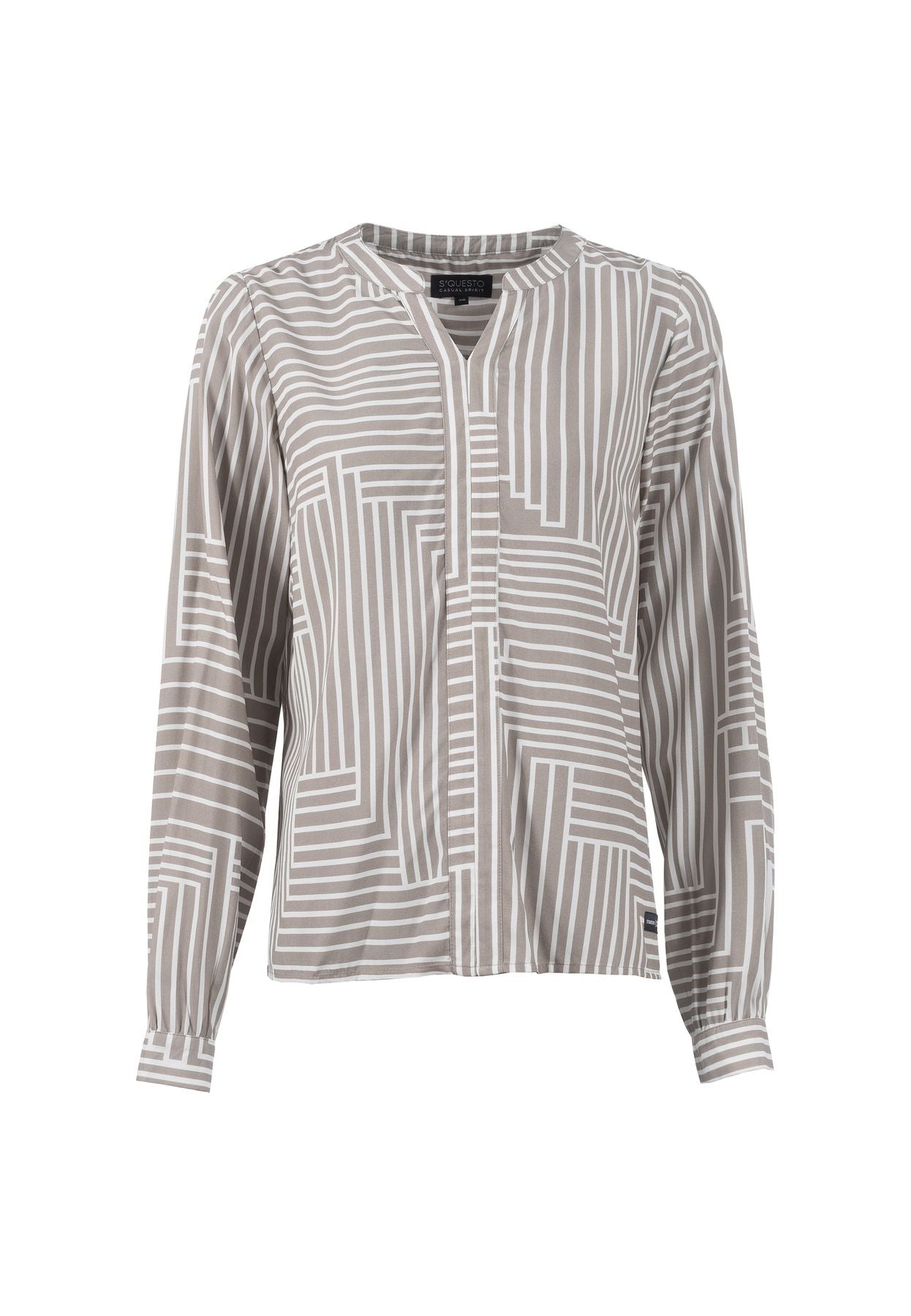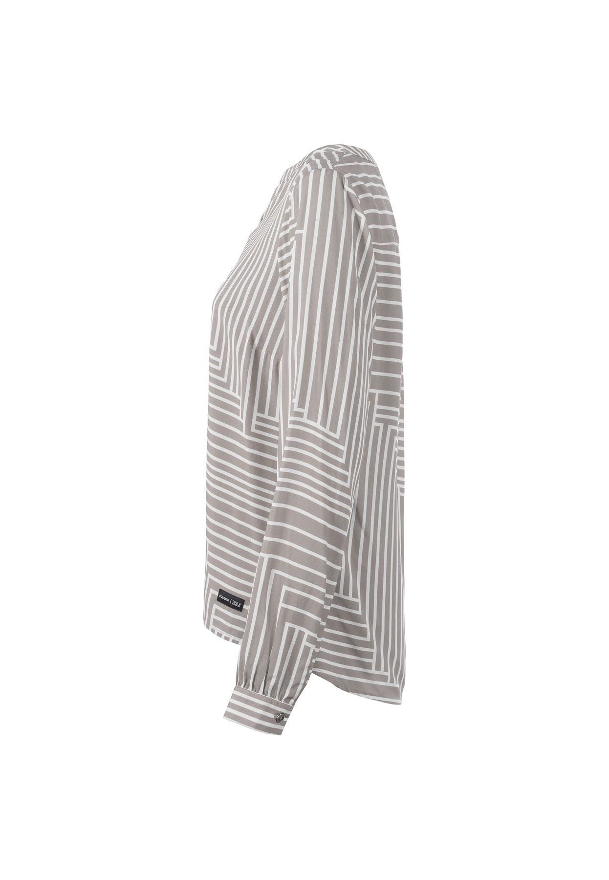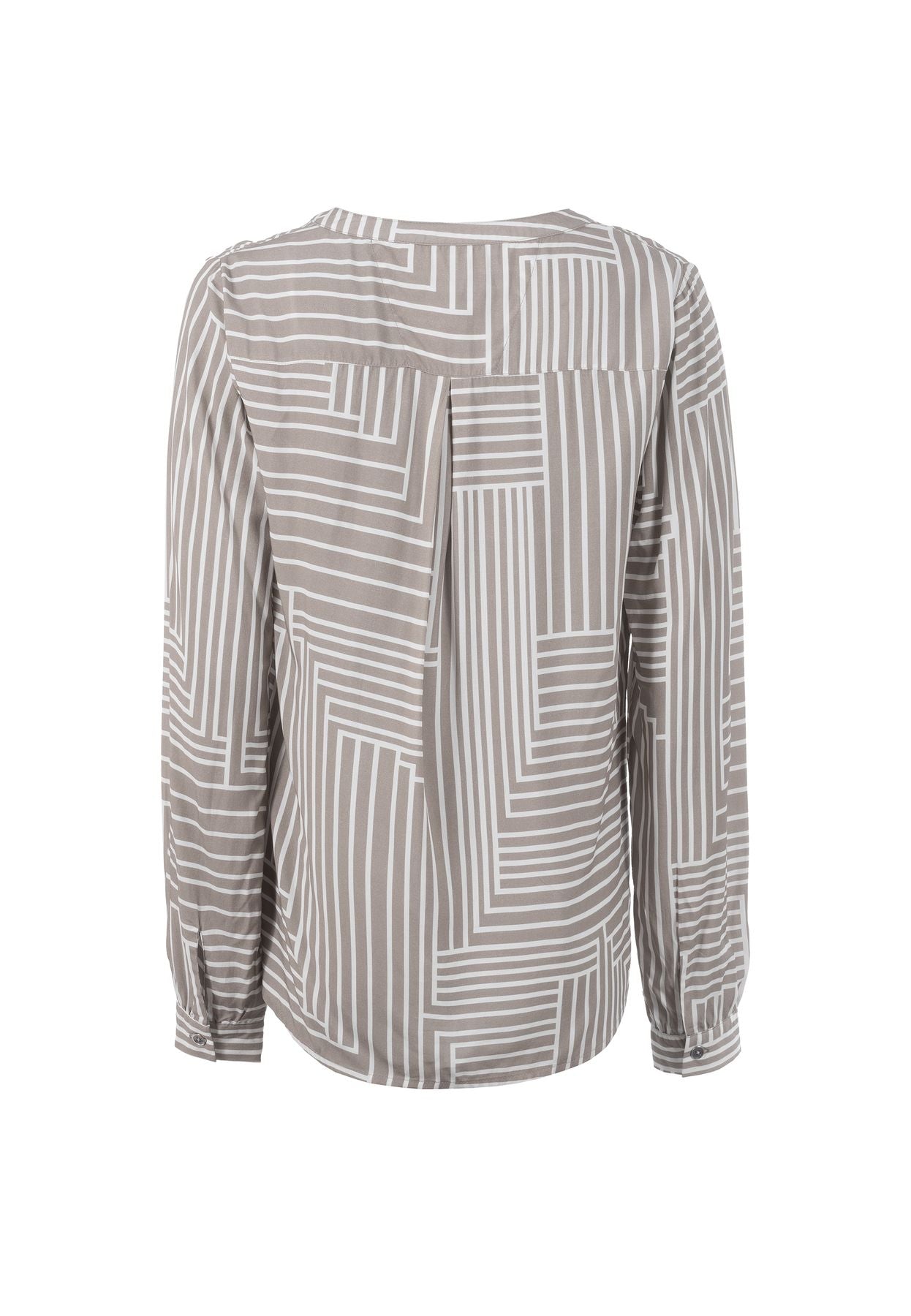 Lockere Schlupfbluse mit 1/1-Arm und femininer Silhouette. Abgerundet wird der zarte Schnitt durch den V-Ausschnitt und eine fließende Ware. Mit grafischem Allover-Muster.