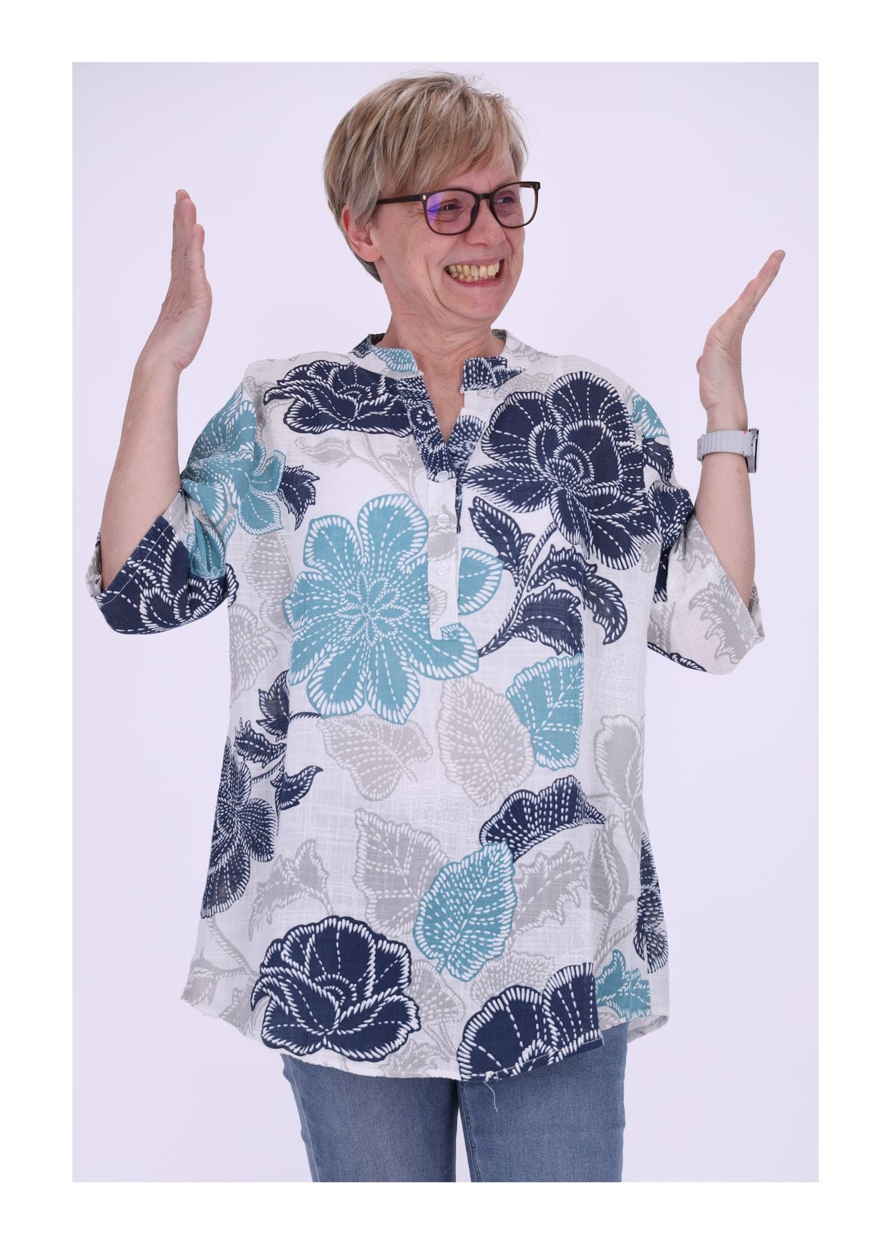 Styling-Tipp: Trage das Blusenshirt offen über einem Tanktop mit Jeansshorts für einen entspannten Sommerlook oder kombiniere es geschlossen mit einer schmalen Stoffhose und Sneakers für einen sportiv-eleganten Auftritt – ein echtes Allround-Talent für jede Gelegenheit!