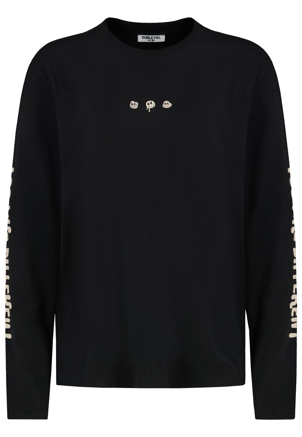 DOB langarm T-shirt, lockerer Schnitt, Rundhals mit Rippblende, Druck auf VT, RT & Ärmel"positive energy,best life, i like you"