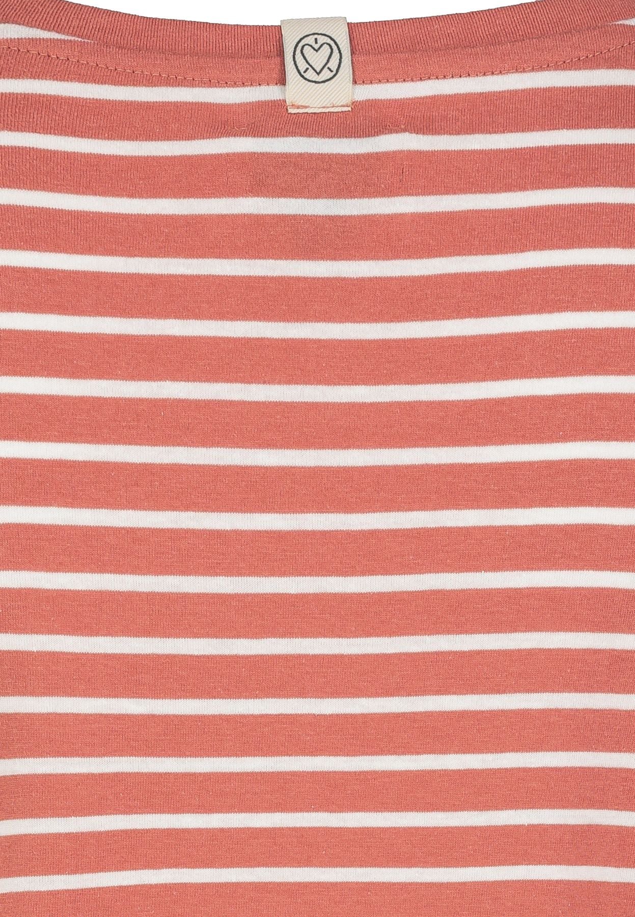 Das gestreifte Damen-T-Shirt überzeugt mit liebevollen Details und hohem Tragekomfort. Die Umschlagbündchen an den Ärmeln verleihen dem Shirt eine lässige Note, während die Zierknöpfe am Halsausschnitt für einen charmanten Akzent sorgen.