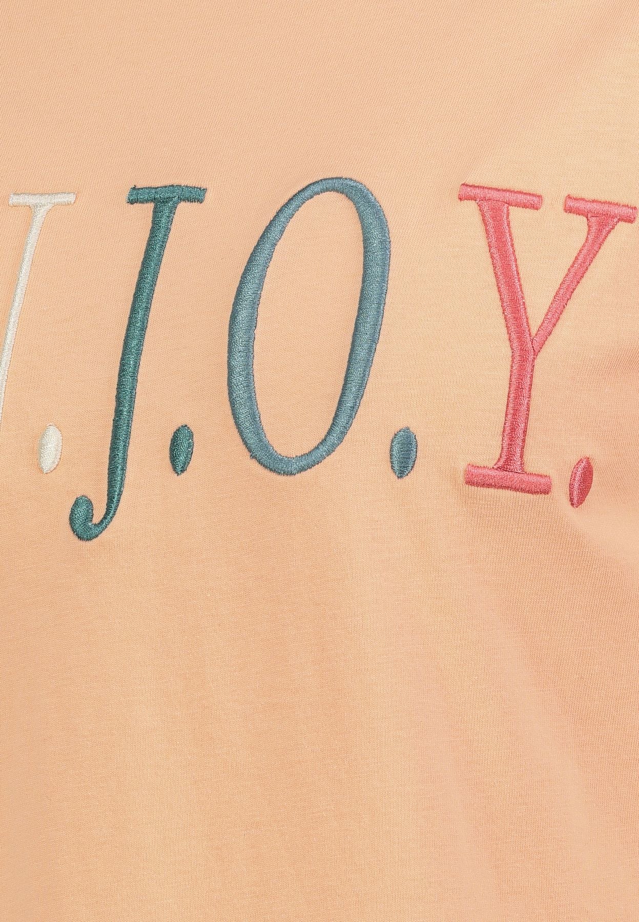 Dieses Damen-T-Shirt begeistert mit umgeschlagenen Ärmeln und einer farbenfrohen Frontstickerei, die für einen verspielten, trendigen Look sorgt. Der weiche, angenehme Stoff bietet hohen Tragekomfort und eine bequeme Passform.