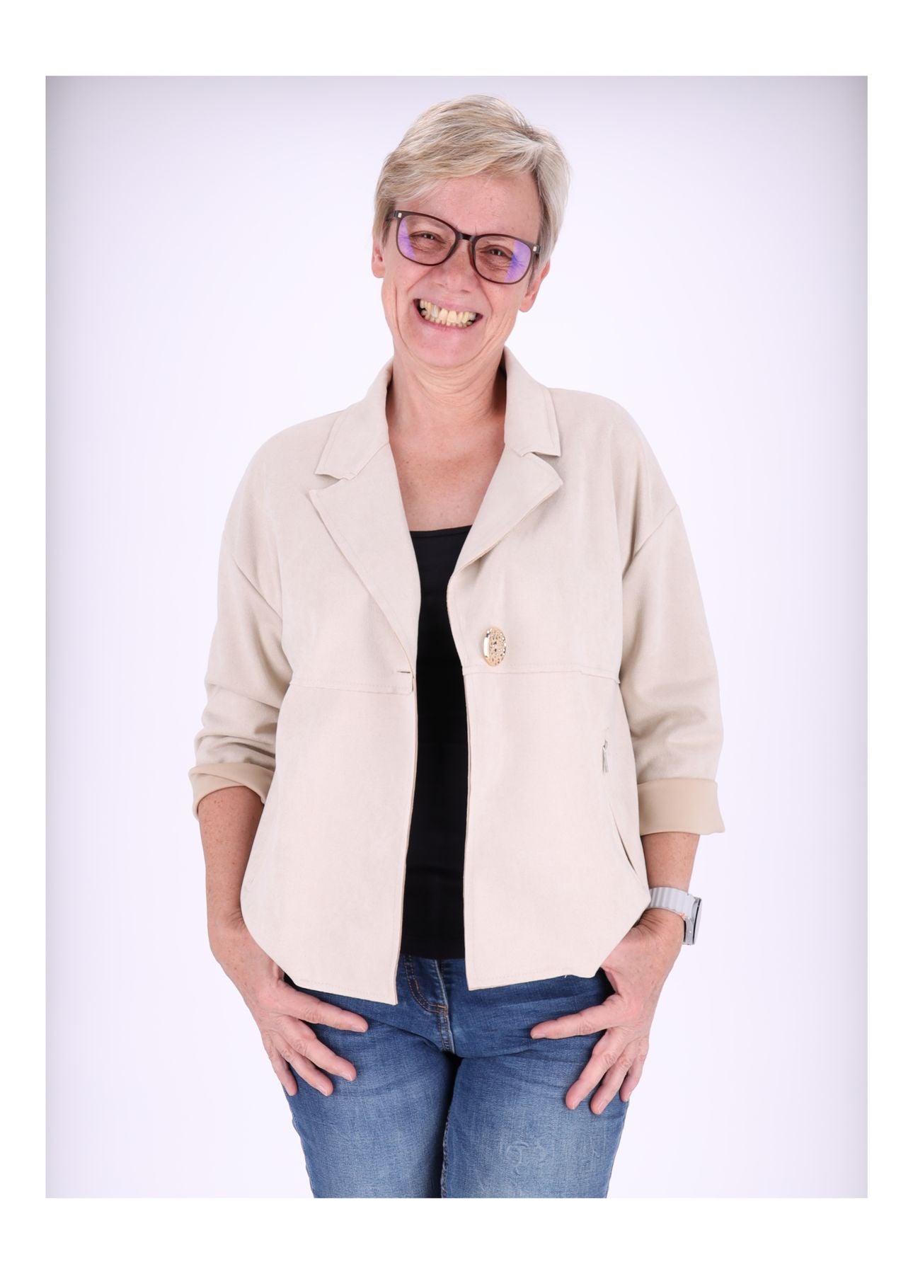 Styling-Tipp: Kombiniere die Boxy-Jacke mit High-Waist-Jeans und Boots für den perfekten Casual-Look oder trage sie über einem schlichten Kleid für einen eleganten Akzent.