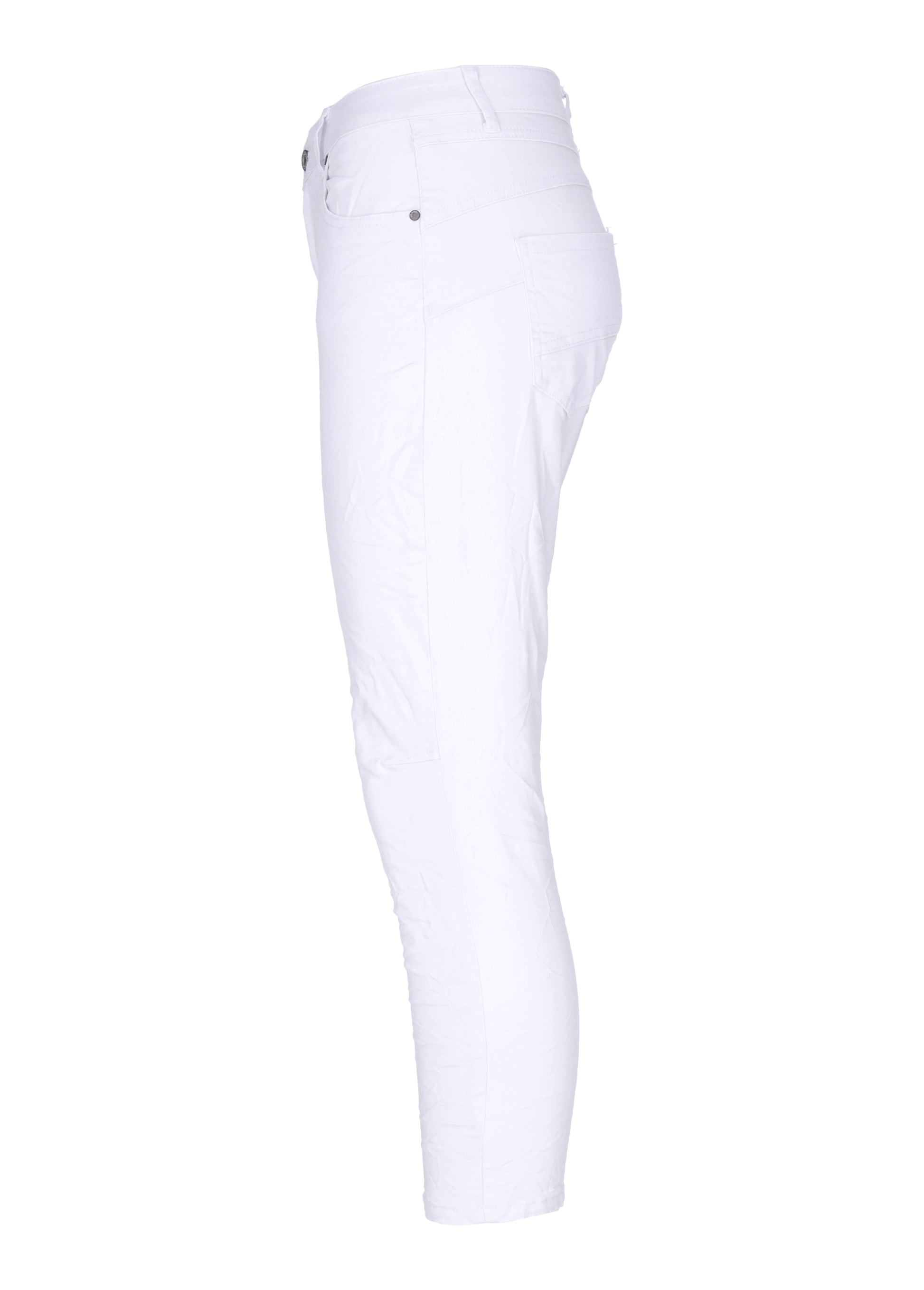 Mit ihrem verkürzten Schnitt und der modernen Knitteroptik verleiht diese Jeans jedem Outfit eine edgy Note und setzt dabei auf einen zeitgemäßen Look. Das strahlende Weiß lässt dich in der Menge hervorstechen und verleiht deinem Style eine frische, moderne Ausstrahlung.Kombiniere sie mit einem lässigen T-Shirt und Sneakern für einen entspannten Look oder mit einer Bluse und Heels für einen femininen Touch. Hol dir jetzt diese stylische Jeans und erlebe, wie sie deinen Look auf das nächste Level hebt!