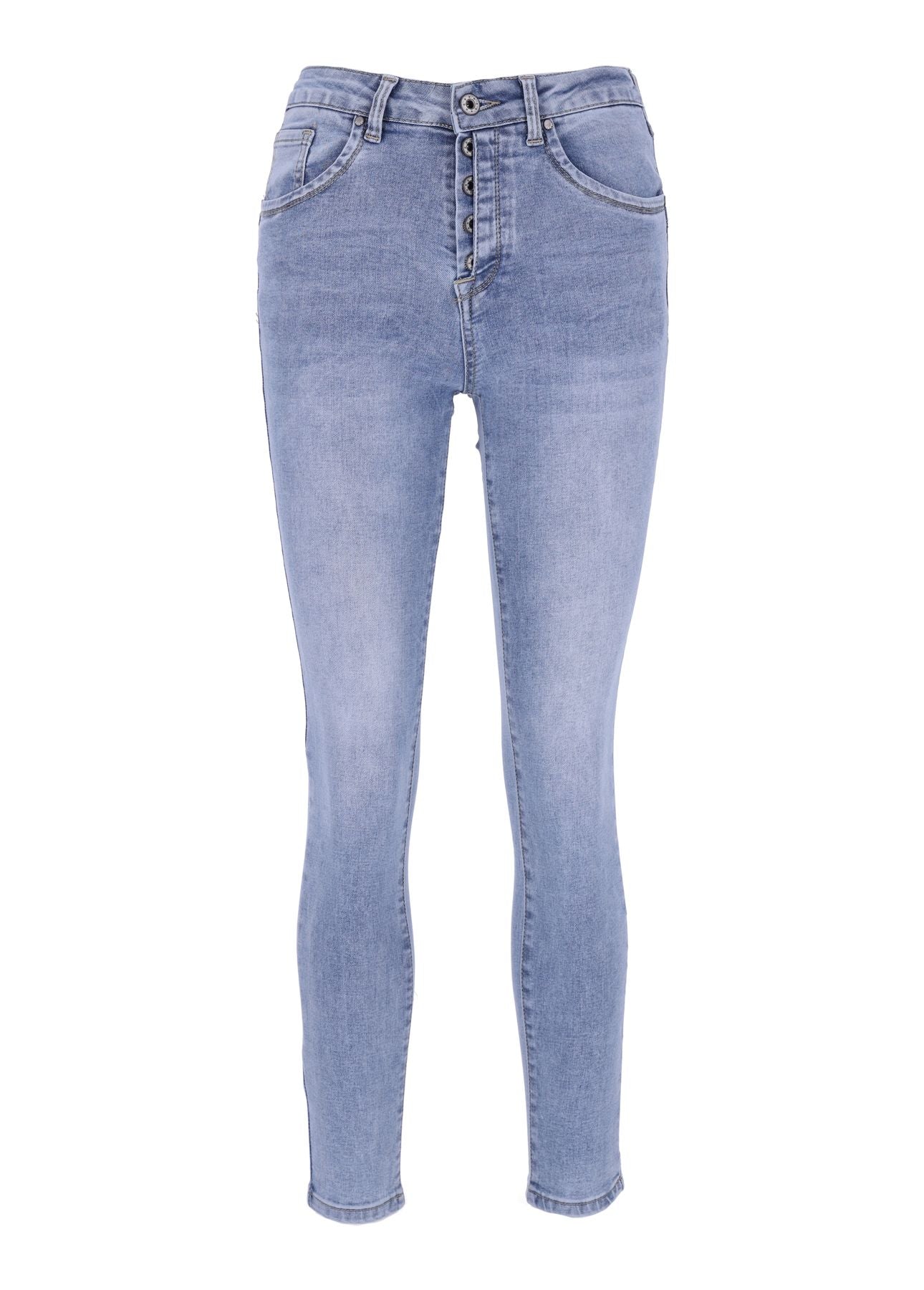 Verleihe deinem Look mit dieser klassischen Damen Skinny Jeans eine elegante Note. Der normale Schnitt und die hohe Knopfleiste sorgen für eine schmeichelhafte Passform und betonen deine Silhouette auf stilvolle Weise. Diese Jeans ist der ideale Begleiter für jeden Anlass – von lässigen Tagen bis zu eleganteren Events.