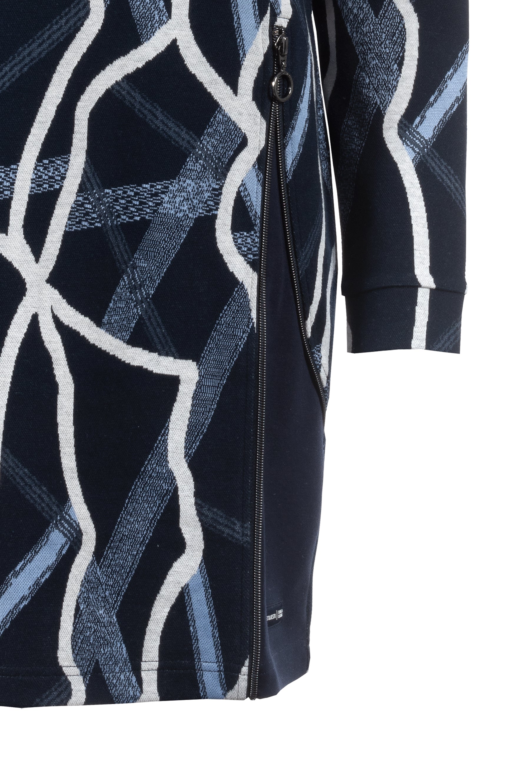 Sportives Kleid mit grafischem Allover-Dessin. Mit langen Ärmeln und Rundhalsausschnitt. Ein besonderes Detail sind die beiden dekorativen Reißverschlüsse an den Seiten.