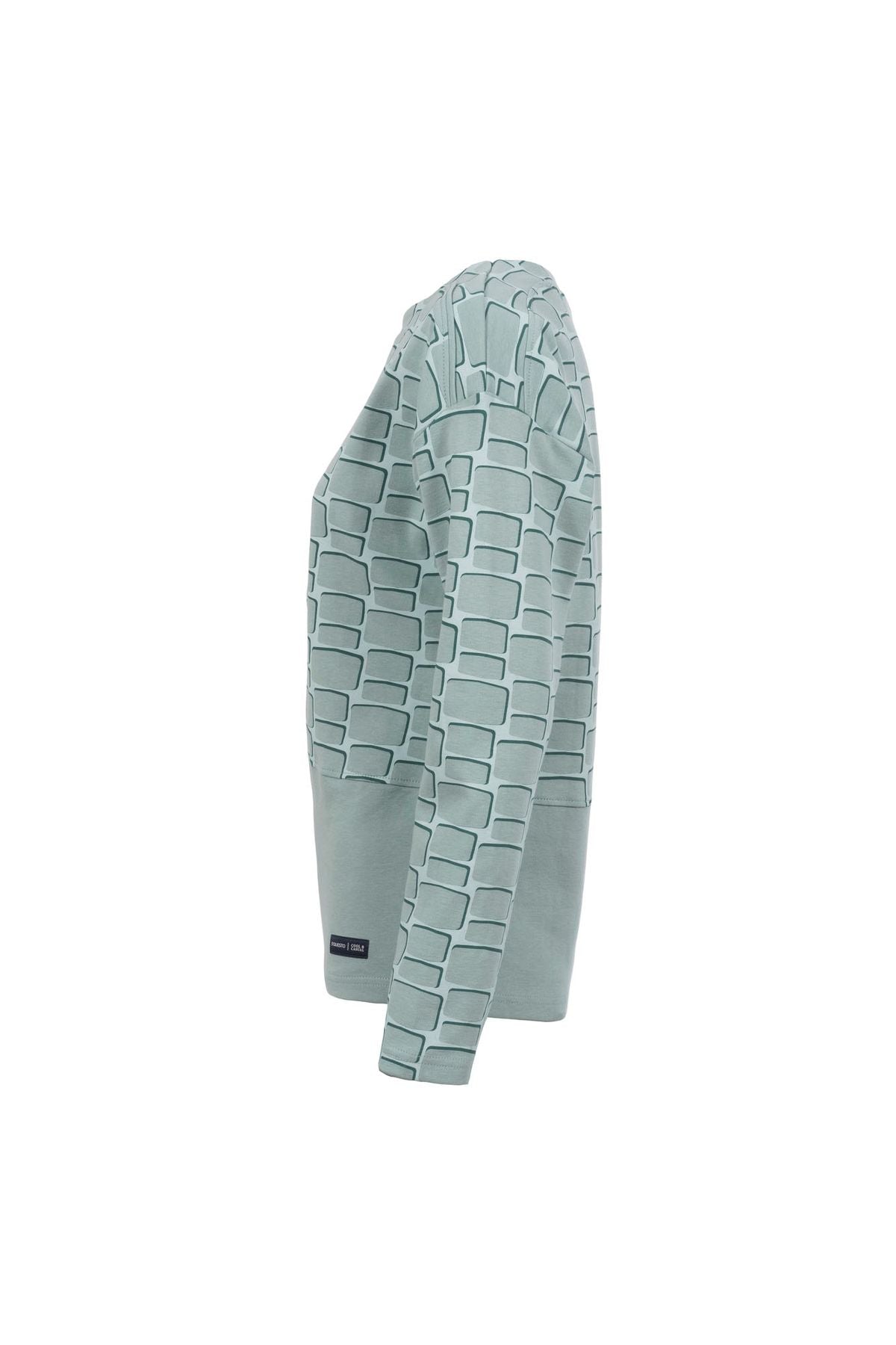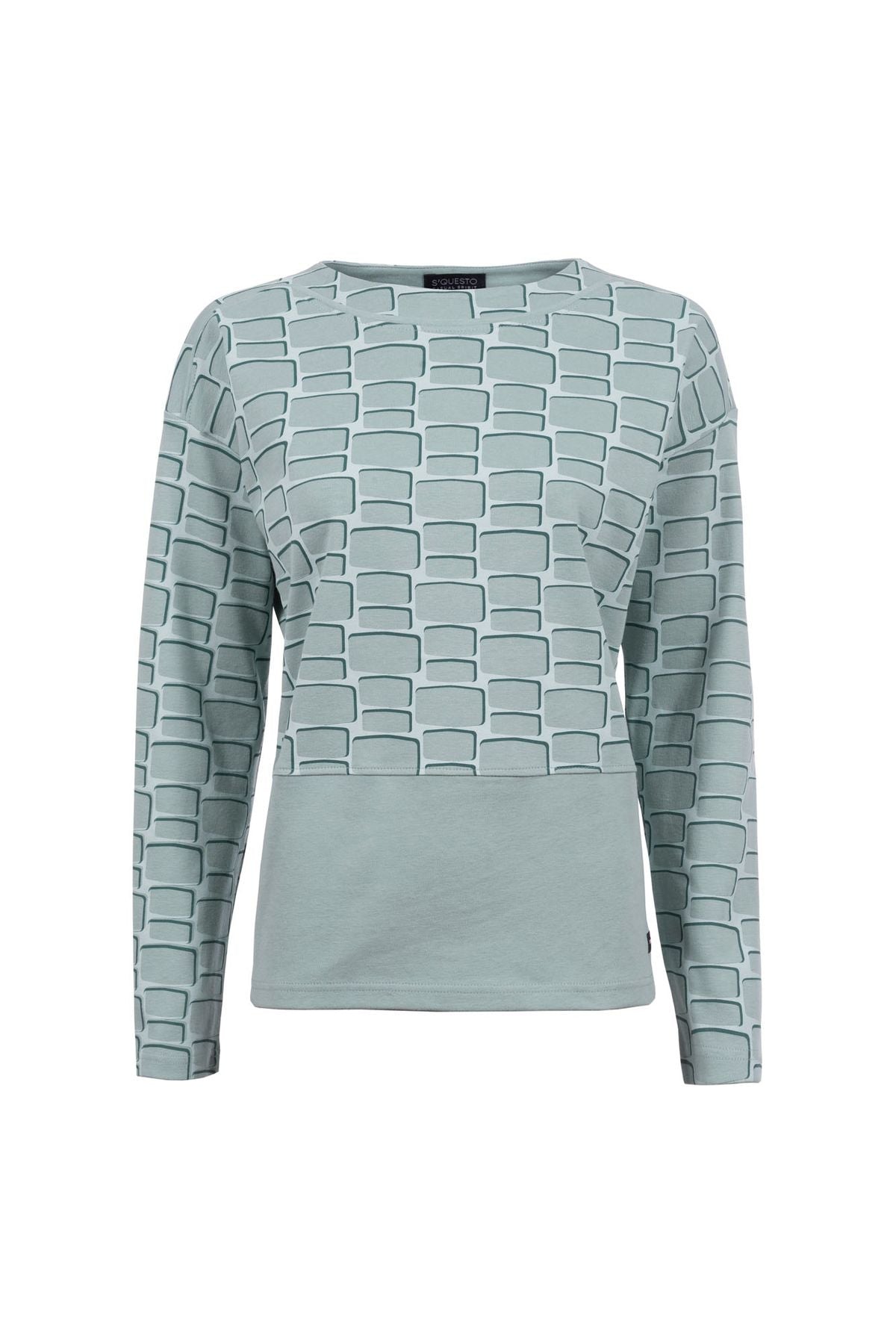 Feminines Sweatshirt mit gepeachter Oberfläche für eine hochwertige Optik und ein angenehmes Tragegefühl. Mit grafischem Allover-Print und breitem,unifarbenem Abschluss für das besondere Etwas.