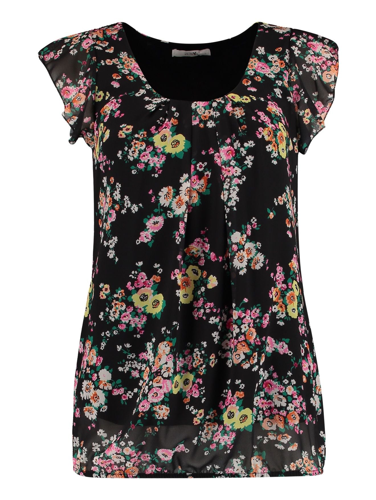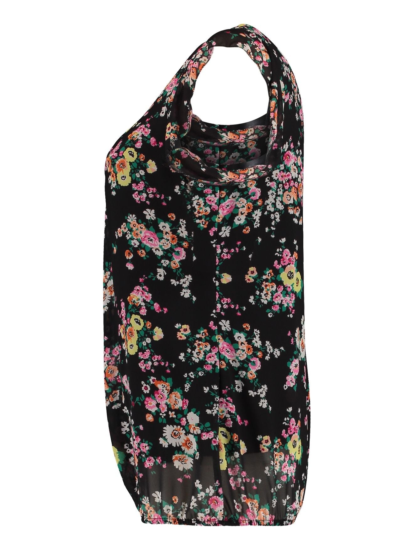 Ärmelloses Top mit großem Rundhalsschnitt und elastischem Gummibund, allover print