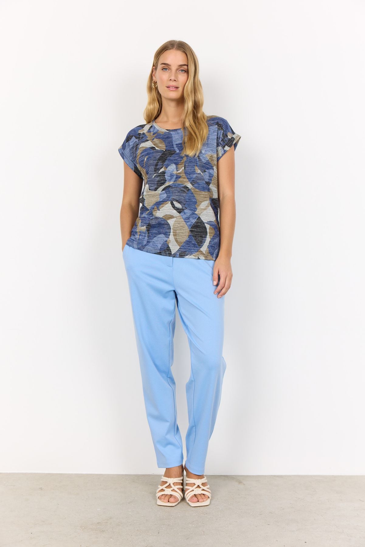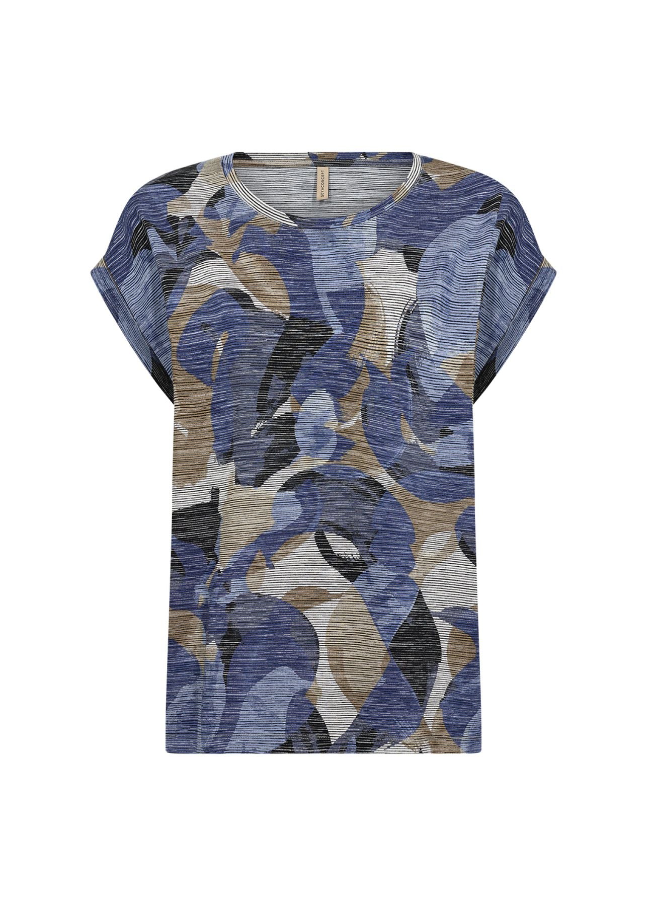 SC-GALINA 54 ist ein bequemes T-Shirt aus 52% Viskose, 44% Polyester, 4% Elasthan. Dieses Oberteil hat einen Rundhalsausschnitt, kurze Ärmel und einen abstrakten Blumenprint. Kombiniere es mit deinen Lieblingshosen für einen lässigen Alltagslook.