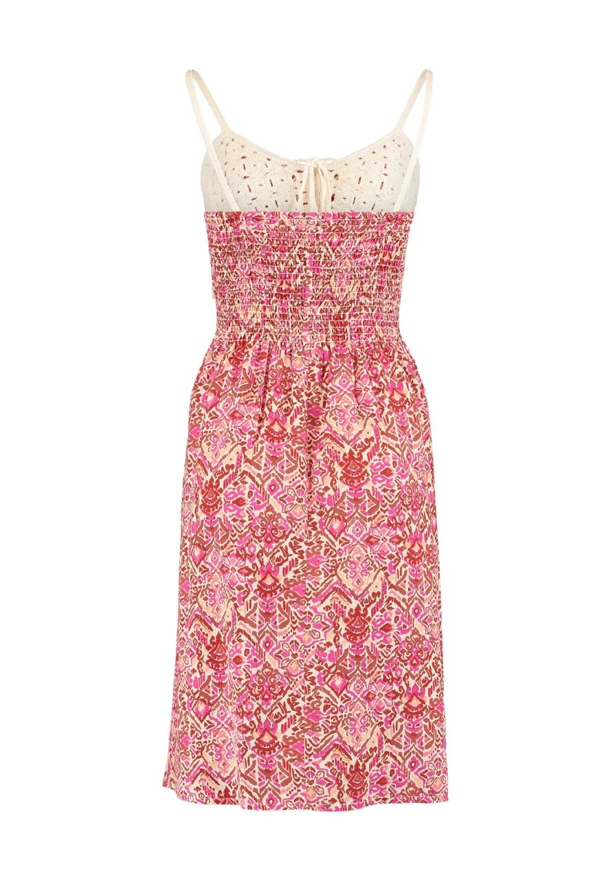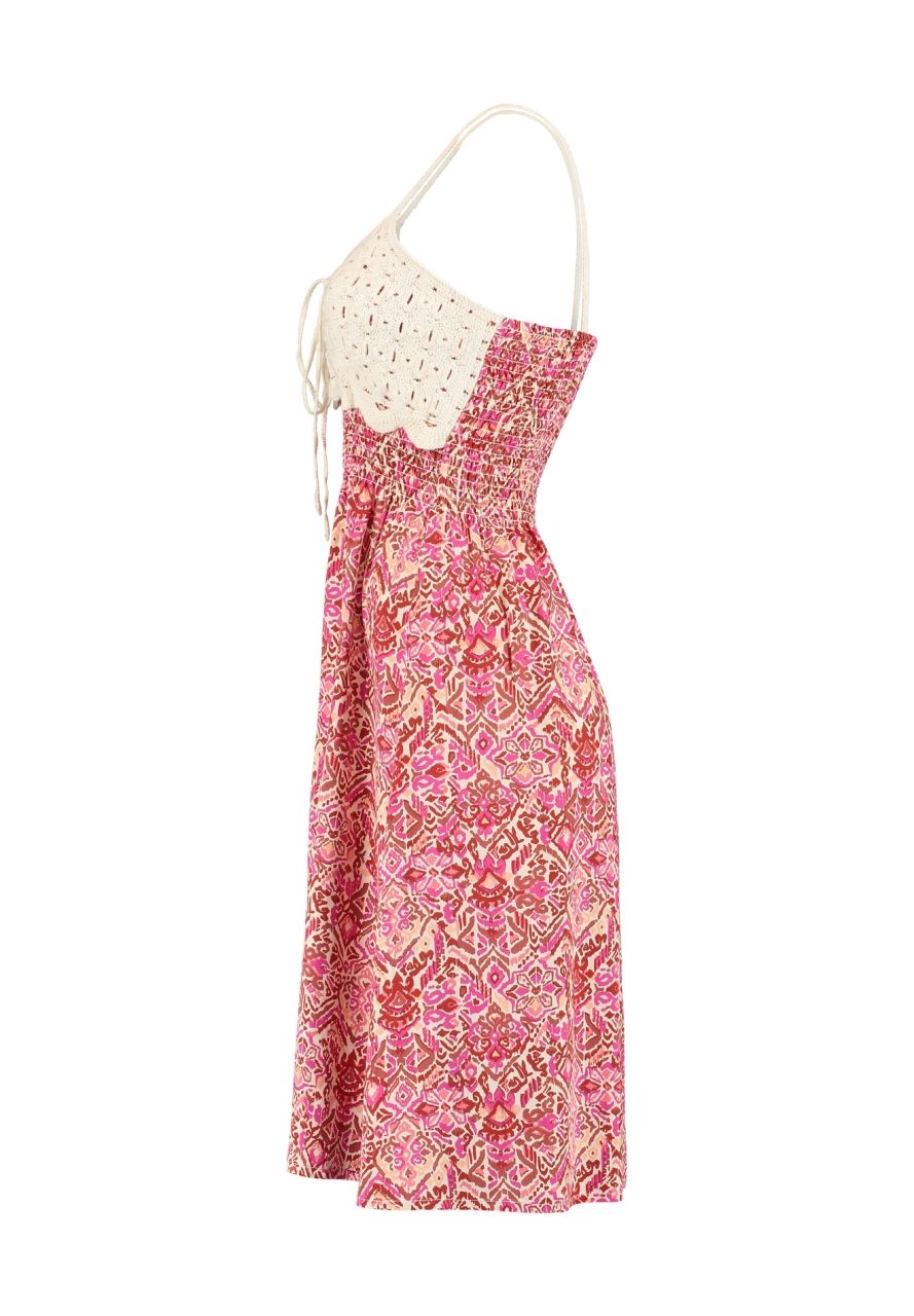 Trägerkleid mit Crochet-Oberteil, elastischem Taillenbund und Blumenprint.